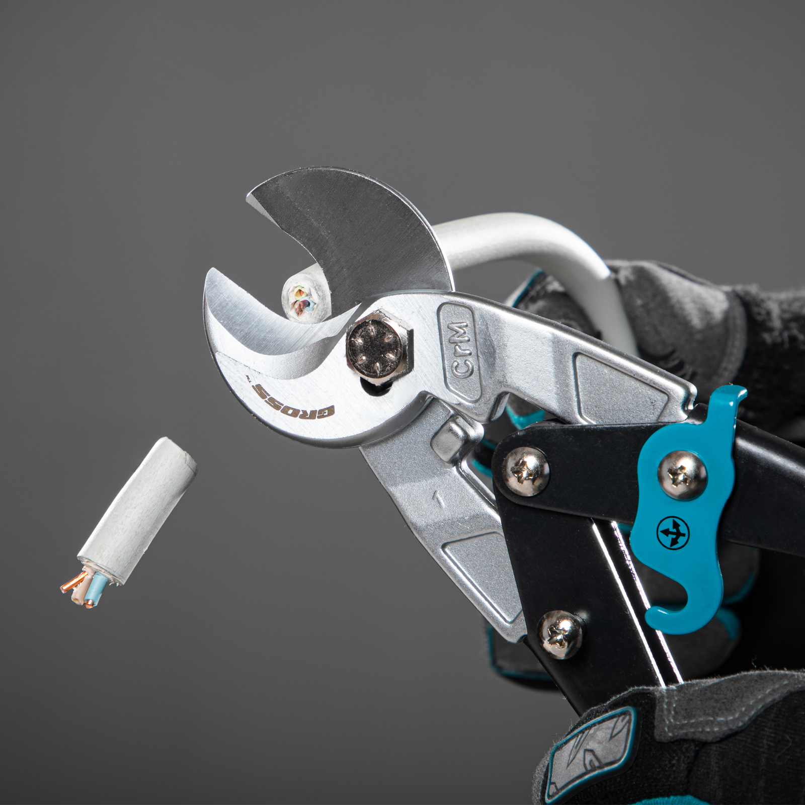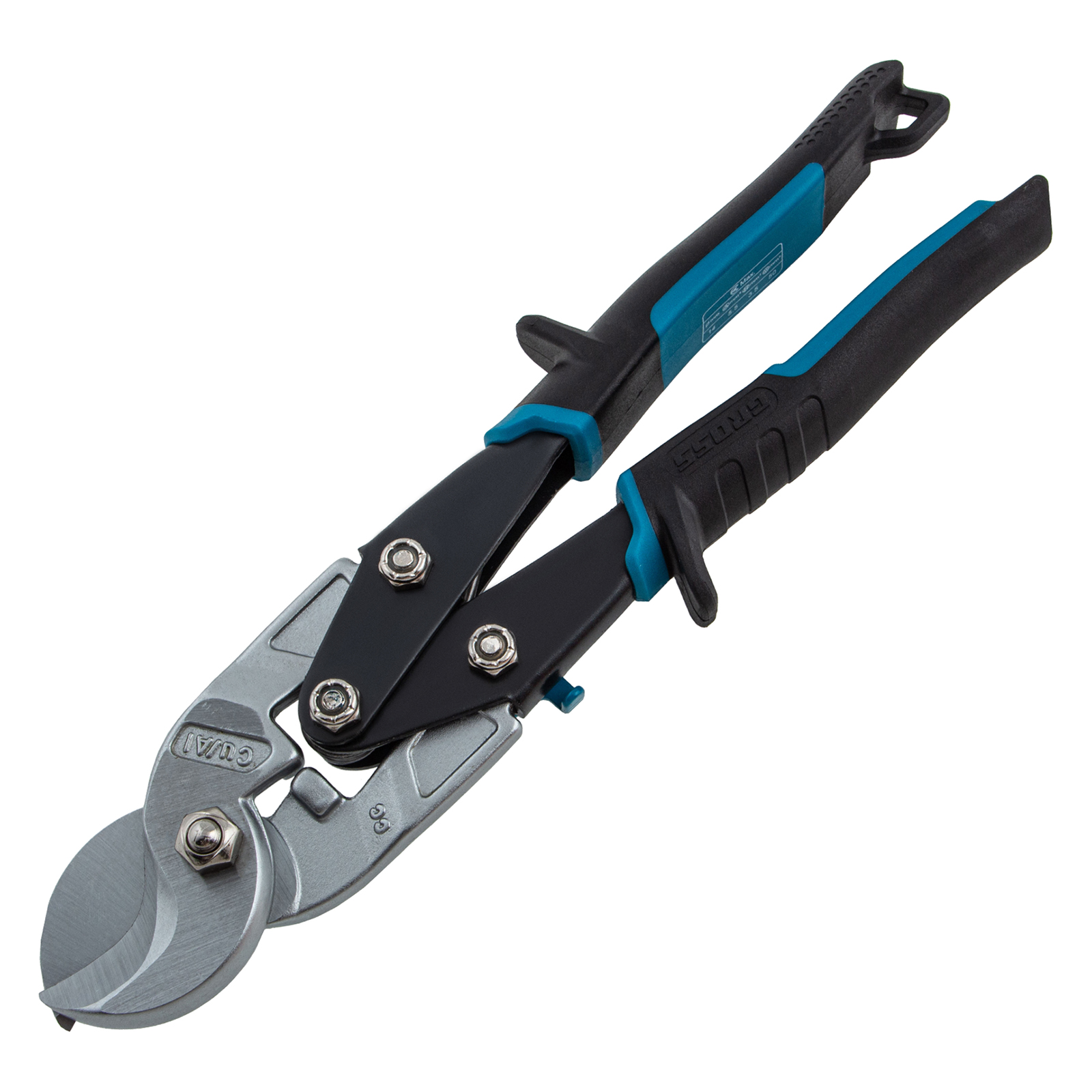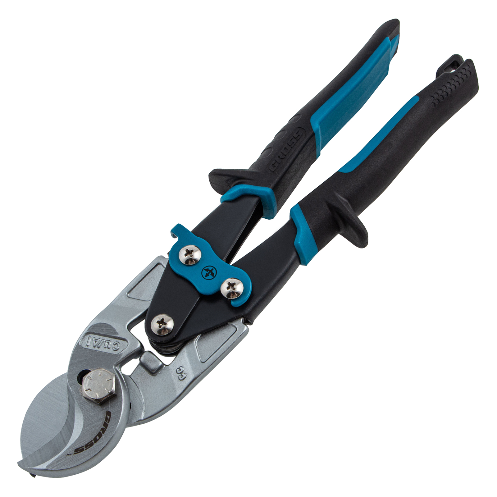 - Двойной рычажный механизм позволяет добиться высокой силы сжатия и сэкономить до 20% усилий при перерезании как алюминиевых, так и медных кабелей.