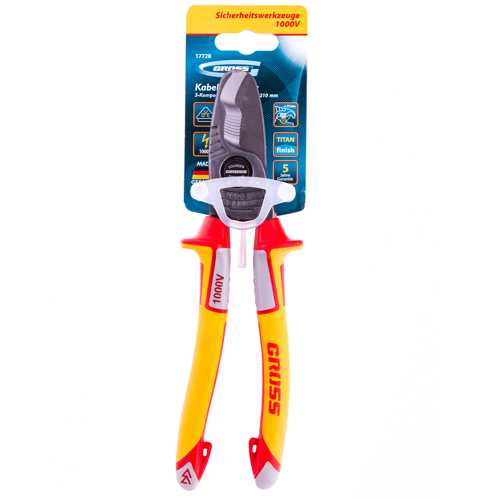 Кабелерез, диэлектрические рукоятки до 1000 В, трехкомпонентные рукоятки, 210 мм Gross в Москве