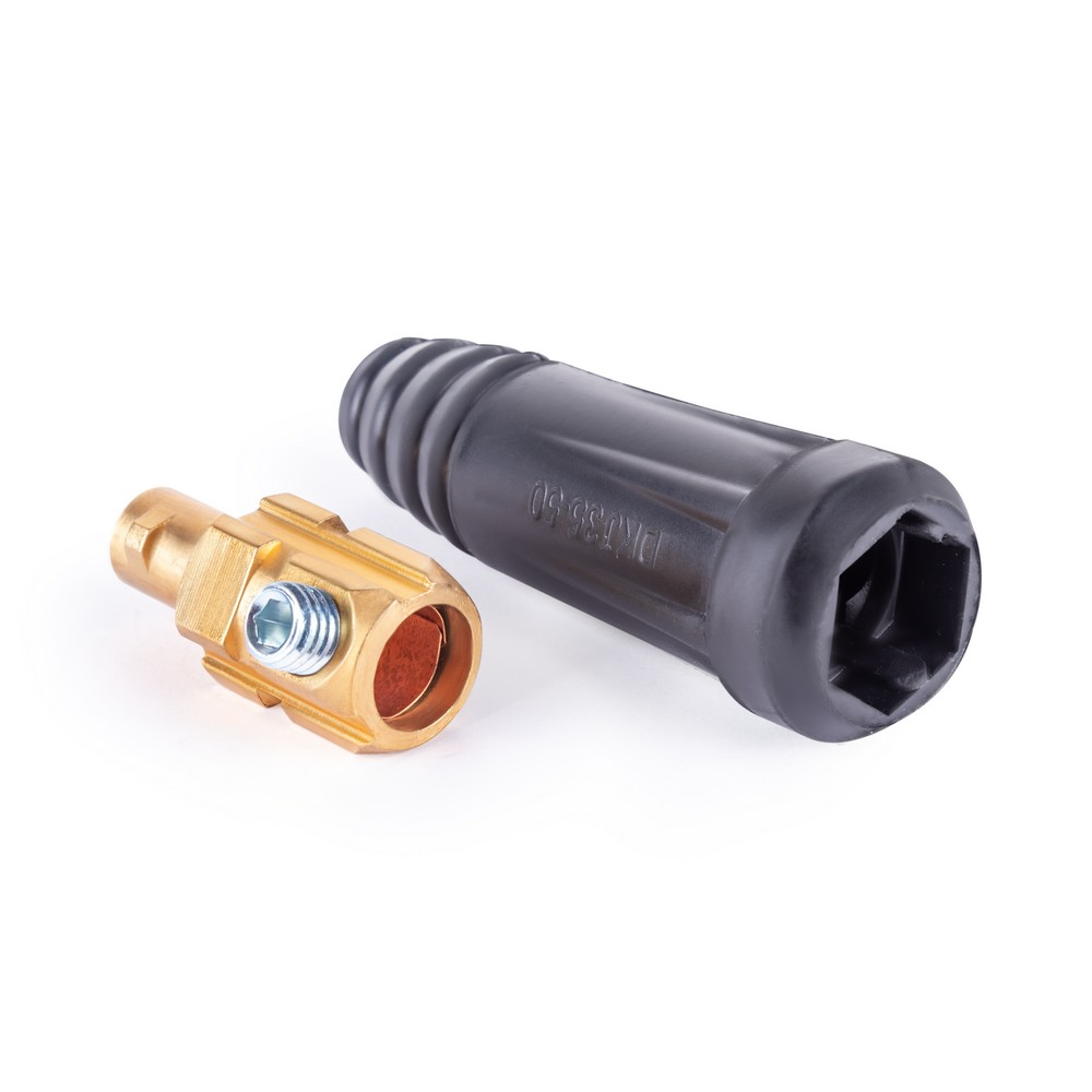 Кабельный соединитель-вилка позволяет надежно и безопасно подключить сварочный кабель к сварочному аппарату или соединить сварочные кабеля между собой.
