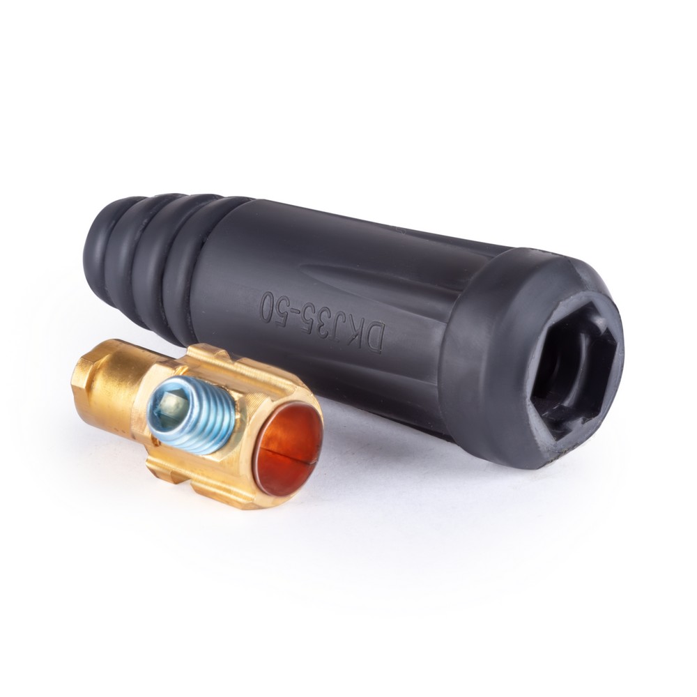 Кабельная вилка 35-50 является комплектующим элементом при выполнении сварки. При помощи устройства соединяются кабели необходимого диаметра, а также предупреждается их самопроизвольное отсоединение. Провод с гнездом и вставкой соединяется при помощи винта. Используя кабельную вилку 35-50, можно осуществлять работы на любом сварочном оборудовании, независимо от производителя оборудования и типа сварки.
