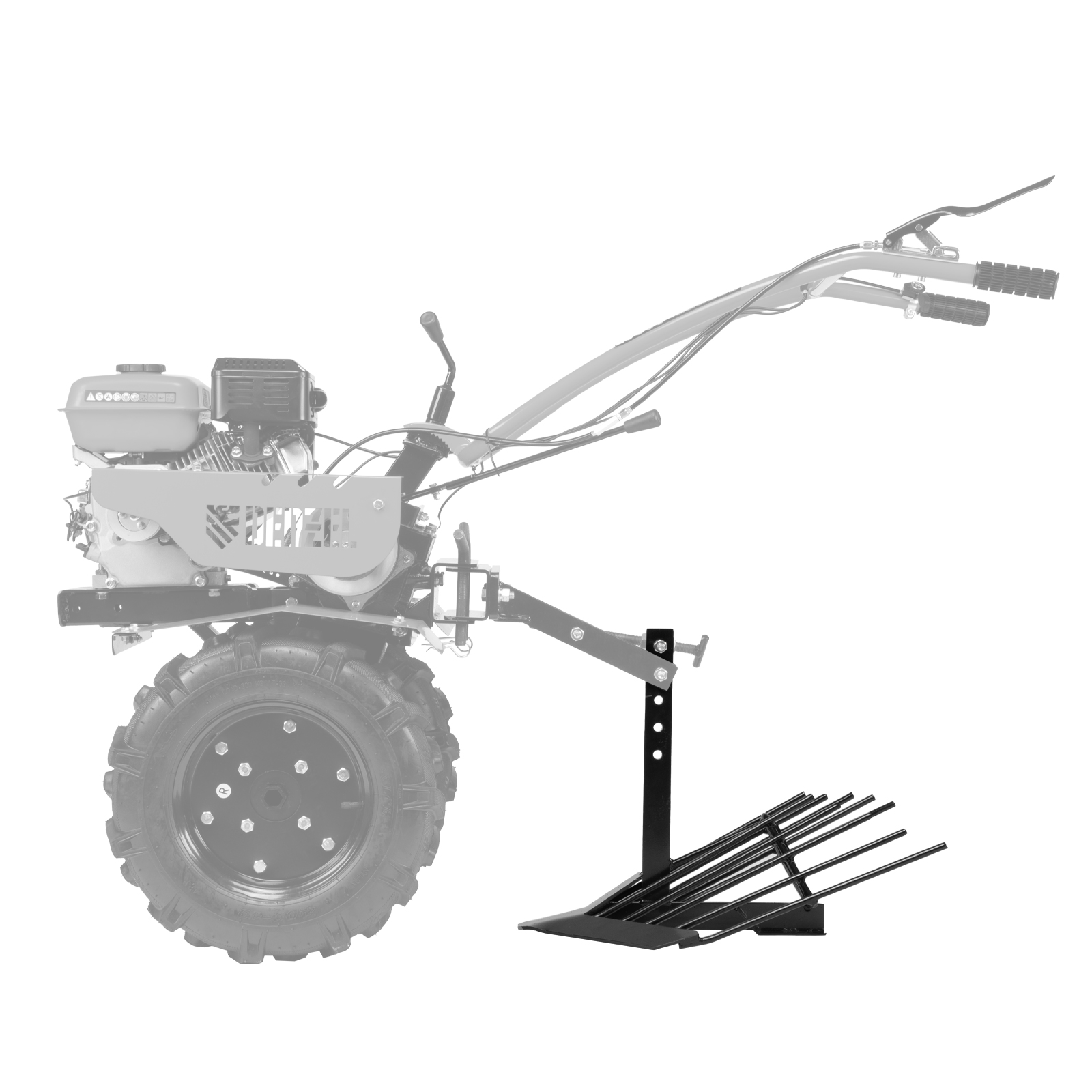 - Универсальность — картофелевыкапыватель можно установить практически на любой мотоблок через сцепку (приобретается отдельно, совместимый артикул 59910).