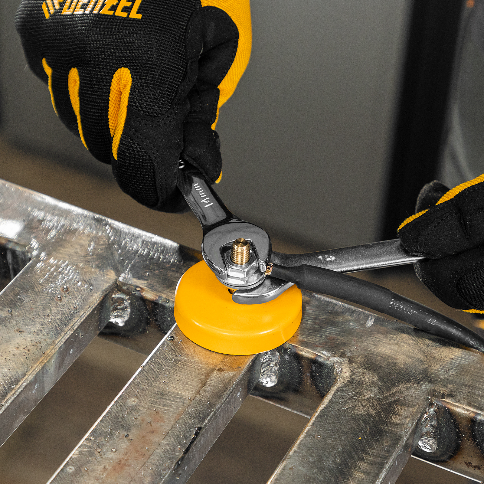 Магнитная клемма «масса» Denzel 97559 с максимальным током 200 А предназначена для соединения рабочего электрода с поверхностью обрабатываемого материала кабелем заземления. Она быстро и надежно крепится даже на изогнутые поверхности и обеспечивает замкнутую электрическую цепь, без которой невозможна ручная дуговая сварка. Клемма пригодится как начинающему, так и профессиональному сварщику при выполнении ремонтных работ и на строительной площадке.