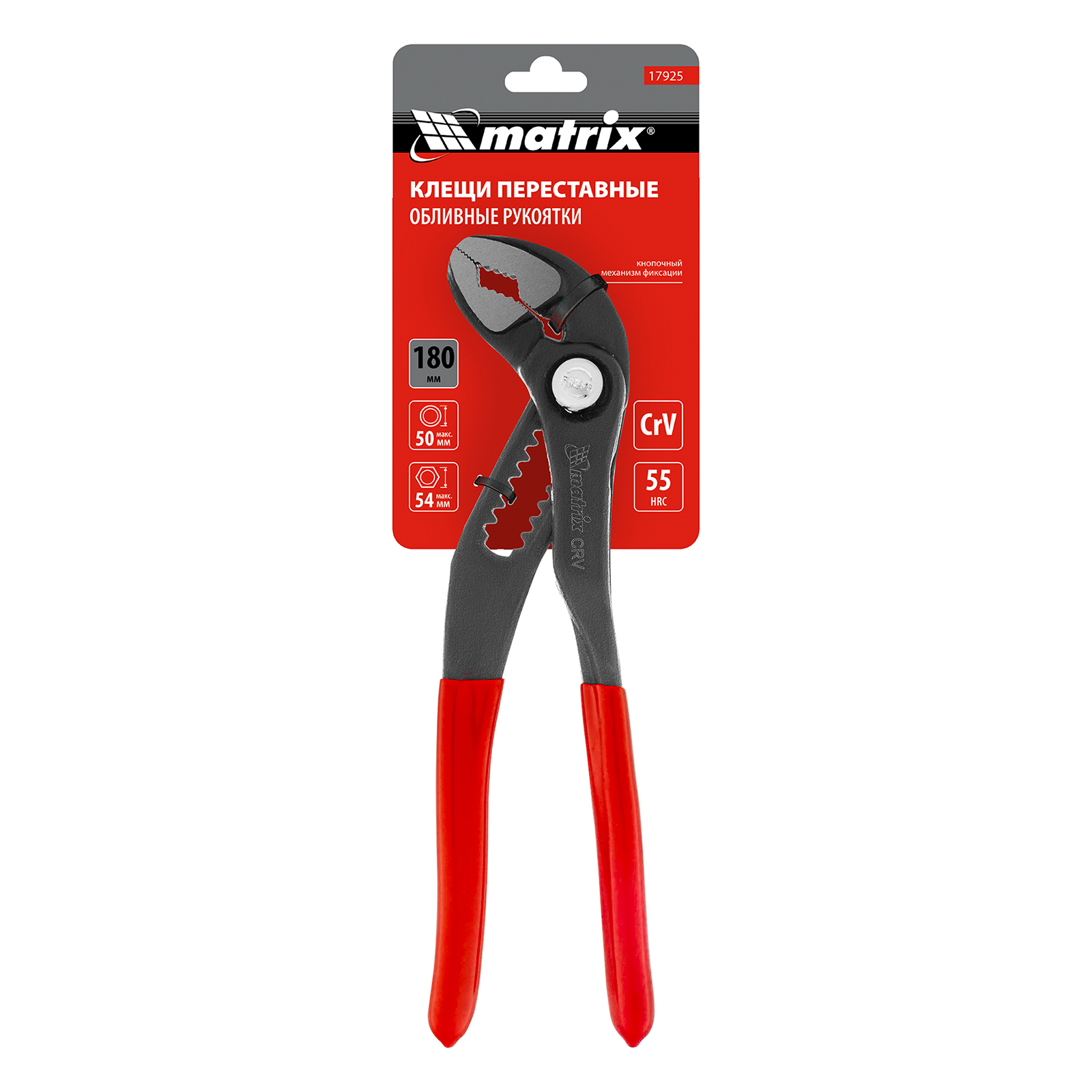 Клещи переставные 180 мм, кнопочный механизм, хром-ванадий, обливные рукоятки Matrix в Москве
