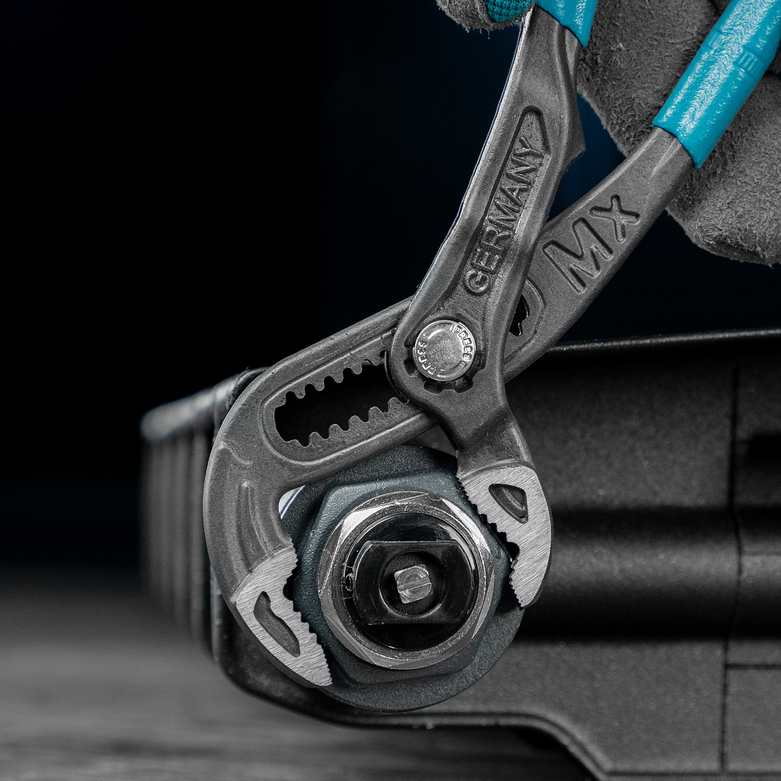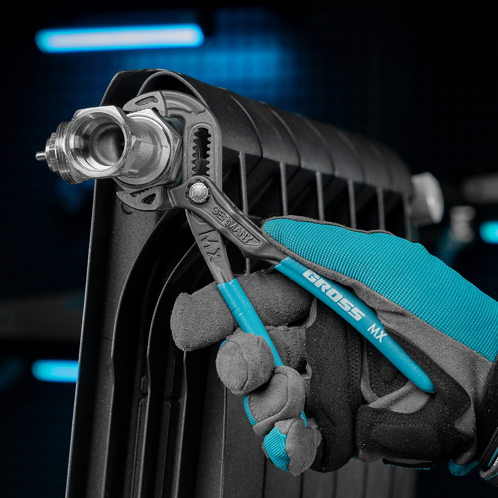 Переставные клещи Gross 15711 длиной 180 мм, с кнопочным механизмом и обливными рукоятками, — профессиональный инструмент для работ с сантехникой, фитингами, трубами и т.д. Рабочие губки с насечками обеспечивают надежный захват изделий диаметром до 35 мм. Клещи удобны для работы в труднодоступных местах.