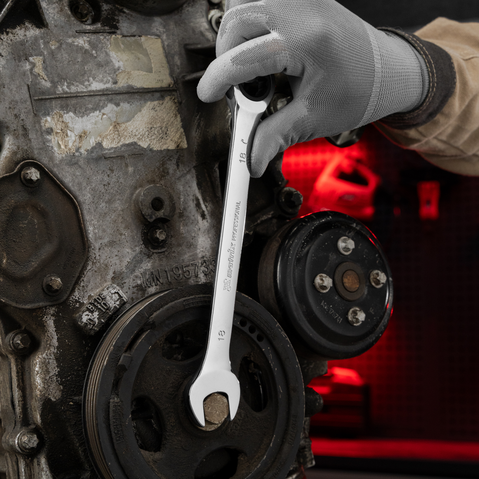 - Прочность — ключ из высококачественной стали 40CrV с храповым механизмом твердостью 58 HRC легко выдерживает интенсивные нагрузки.