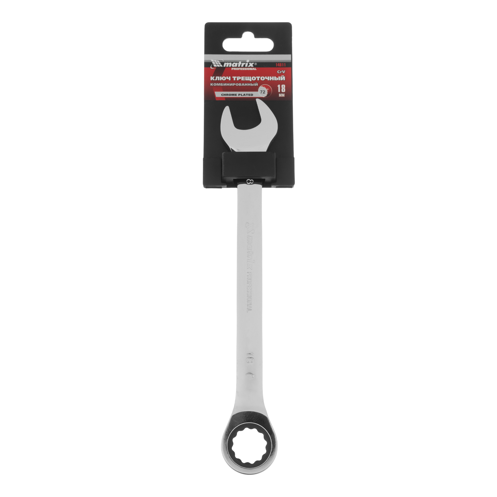 Ключ комбинированный трещоточный, 18 мм, CrV, зеркальный хром Matrix Professional в Москве