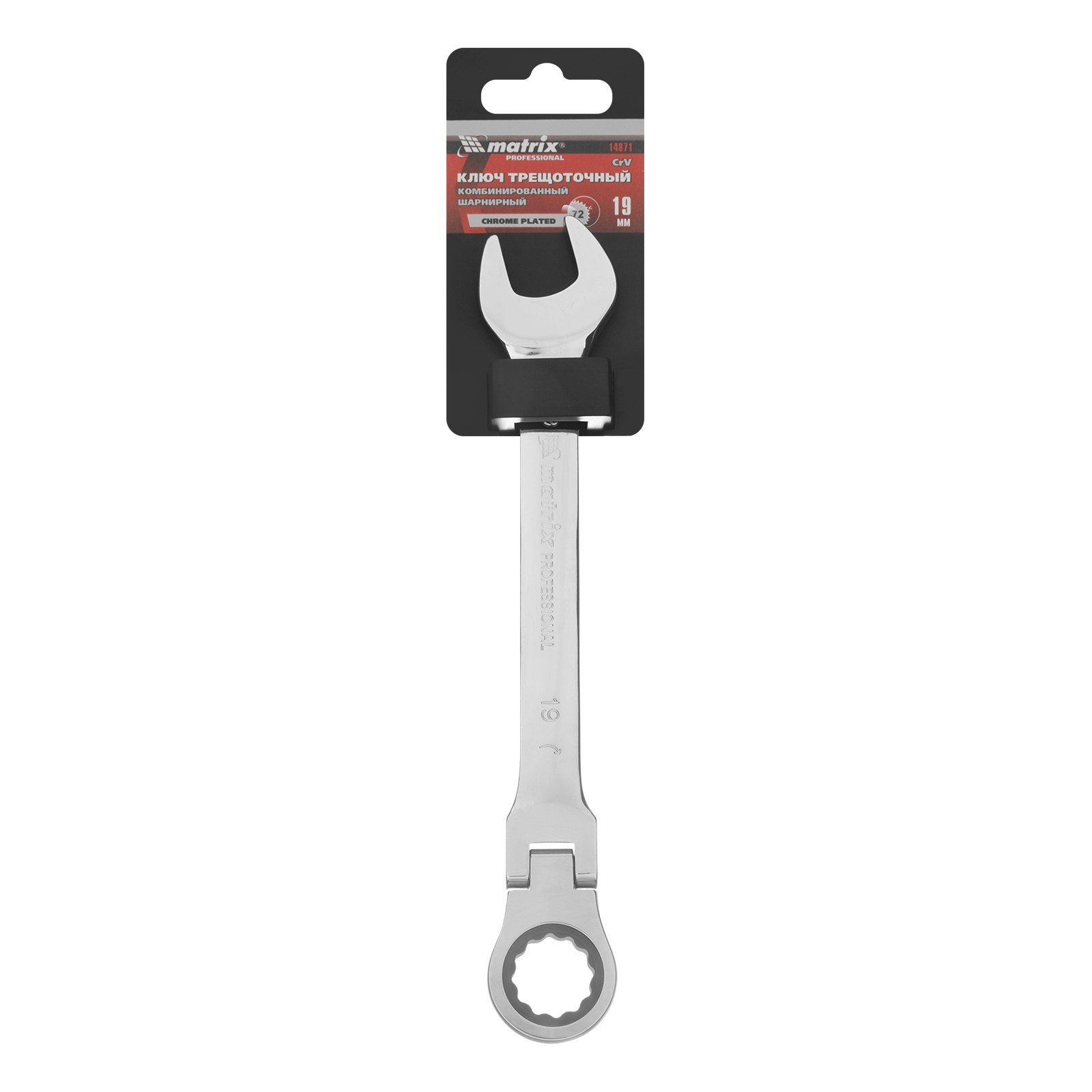 Ключ комбинированный трещоточный, 19 мм, CrV, шарнирный, зеркальный хром Matrix Professional в Москве