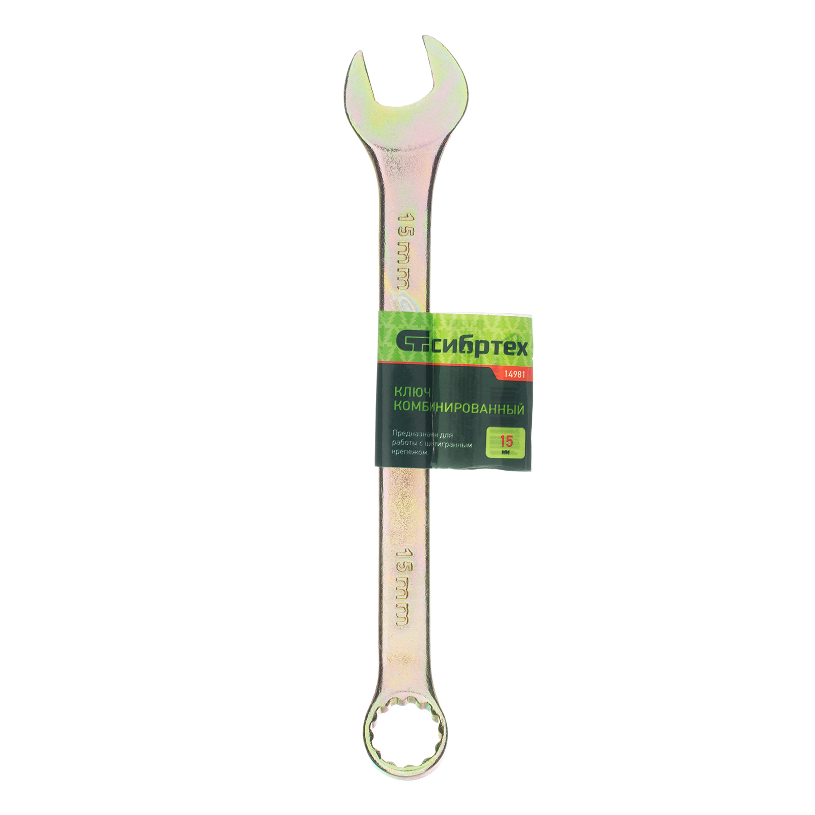 Ключ комбинированный, 15 мм, желтый цинк Сибртех в Москве