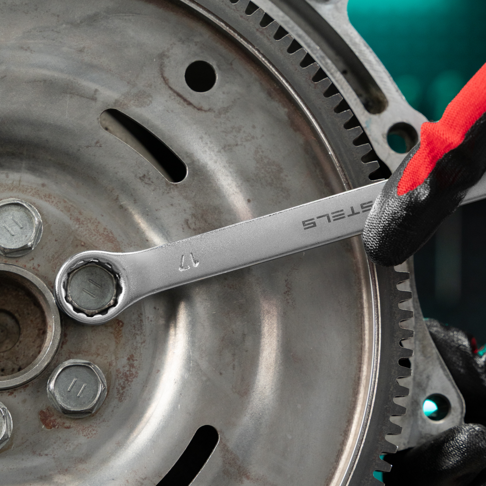 Комбинированный ключ Stels 15213 из стали CrV, 17 мм, покрытый матовым хромом, используется для закручивания и откручивания гаечных и болтовых соединений. Накидная головка имеет 12-гранную внутреннюю поверхность, что облегчает работу с крепежом и уменьшает опасность его повреждения. Ключ применяется в слесарных мастерских и автосервисах, а также будет полезен для решения бытовых задач.