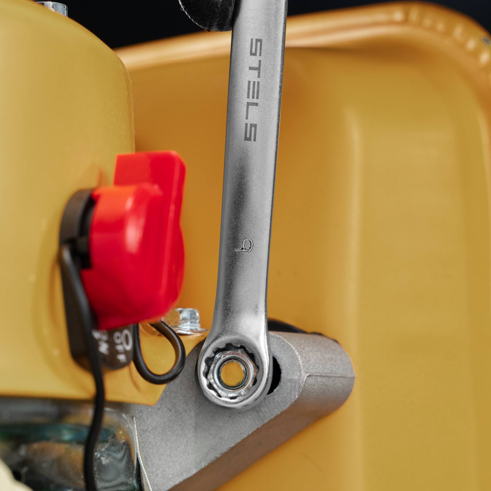 - Комфорт при монтаже в труднодоступных местах — кольцевой зев наклонен под углом в 15 градусов к плоскости ключа.