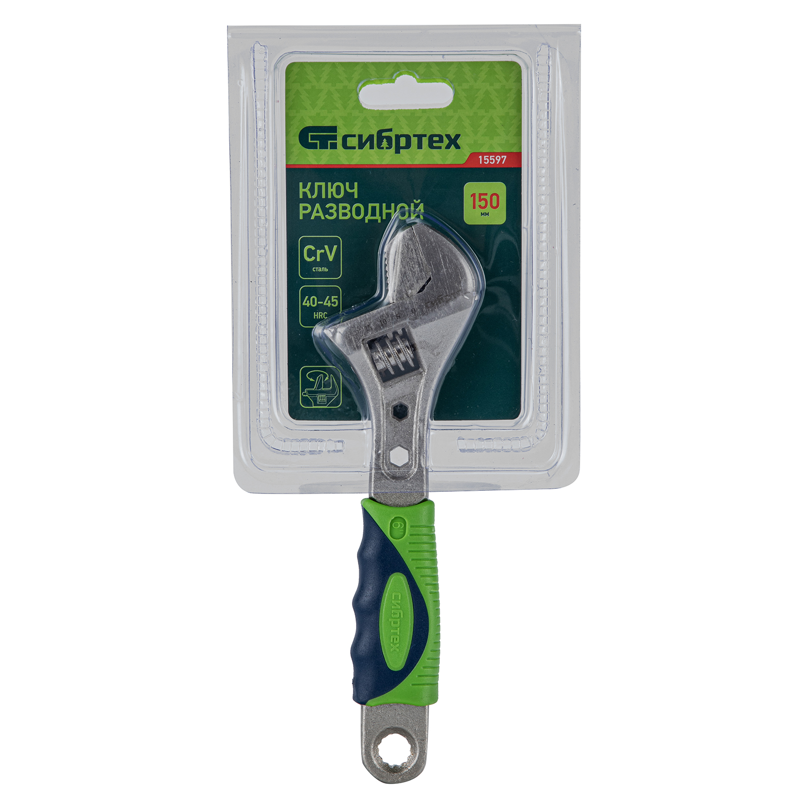 Ключ разводной, 150мм, переставная губка, 2-х комп. рукоятка Сибртех в Москве