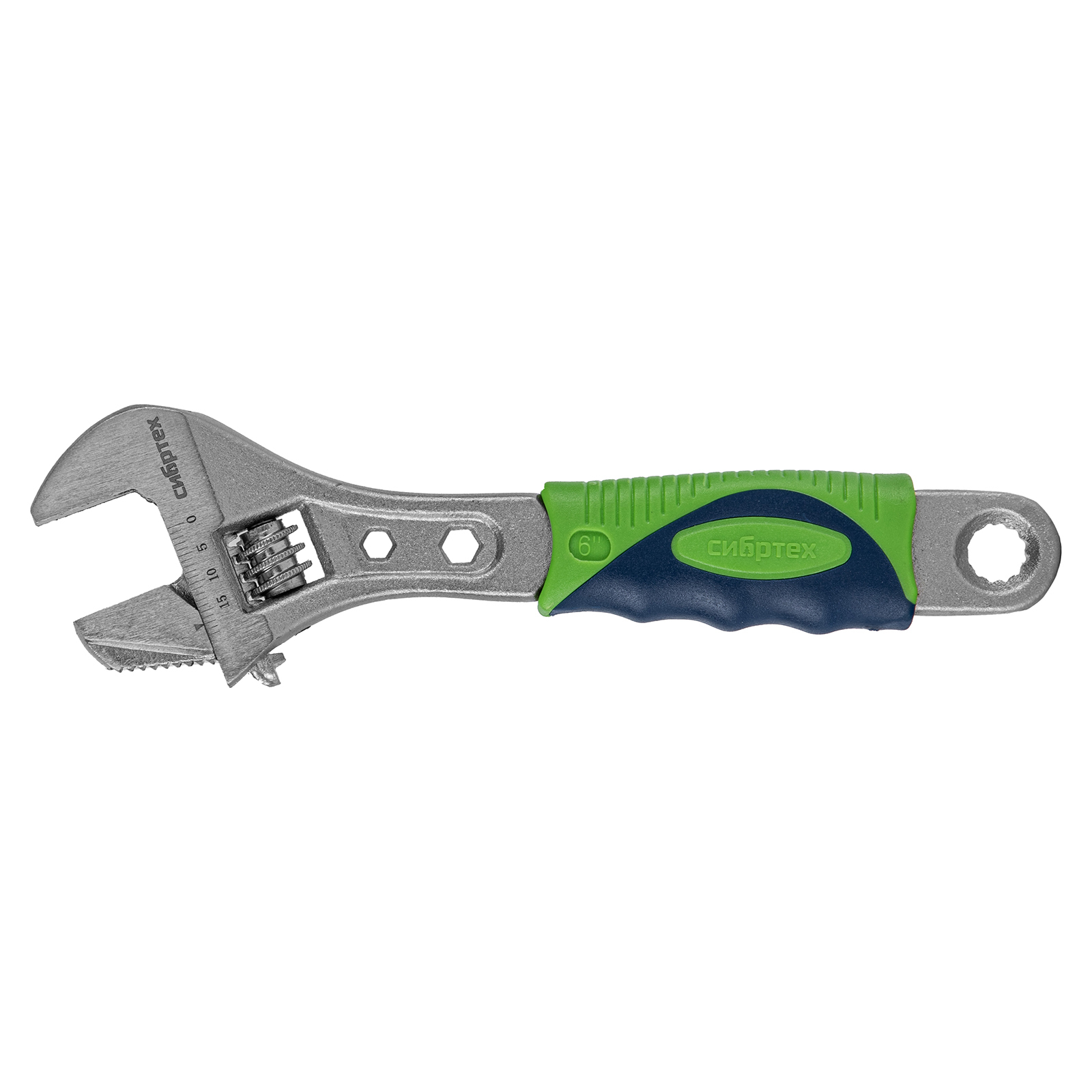 Разводной ключ Сибртех 15597 длиной 150 мм, с переставной губкой и двухкомпонентной рукояткой, предназначен для выполнения монтажных работ. Позволяет справляться с болтами разного размера и способен заменить целый арсенал гаечных ключей. Переставная губка с зазубринами позволяет использовать ключ для работы предметами без специального профиля, например, трубами.