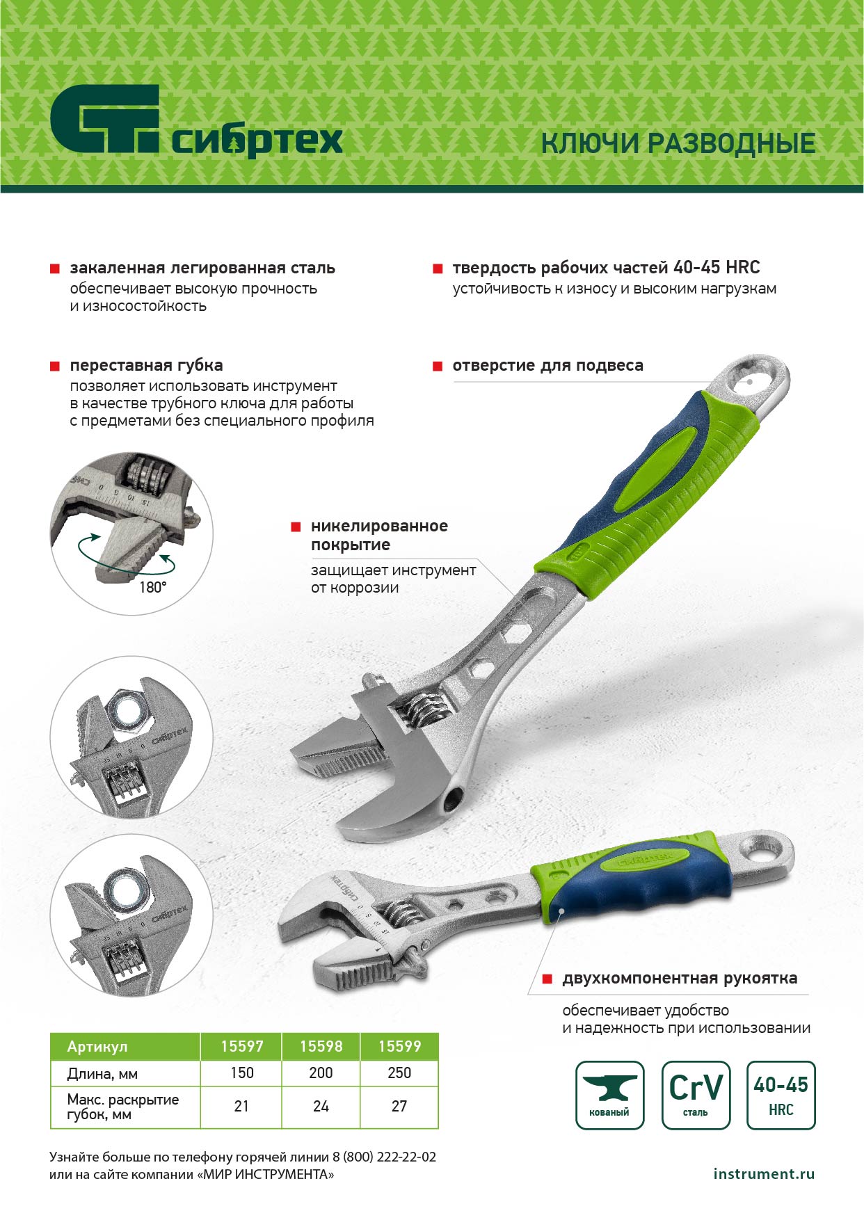 Разводной ключ Сибртех 15598 длиной 200 мм, с переставной губкой и двухкомпонентной рукояткой, предназначен для выполнения монтажных работ. Позволяет справляться с болтами разного размера и способен заменить целый арсенал гаечных ключей. Переставная губка с зазубринами позволяет использовать ключ для работы предметами без специального профиля, например, трубами.