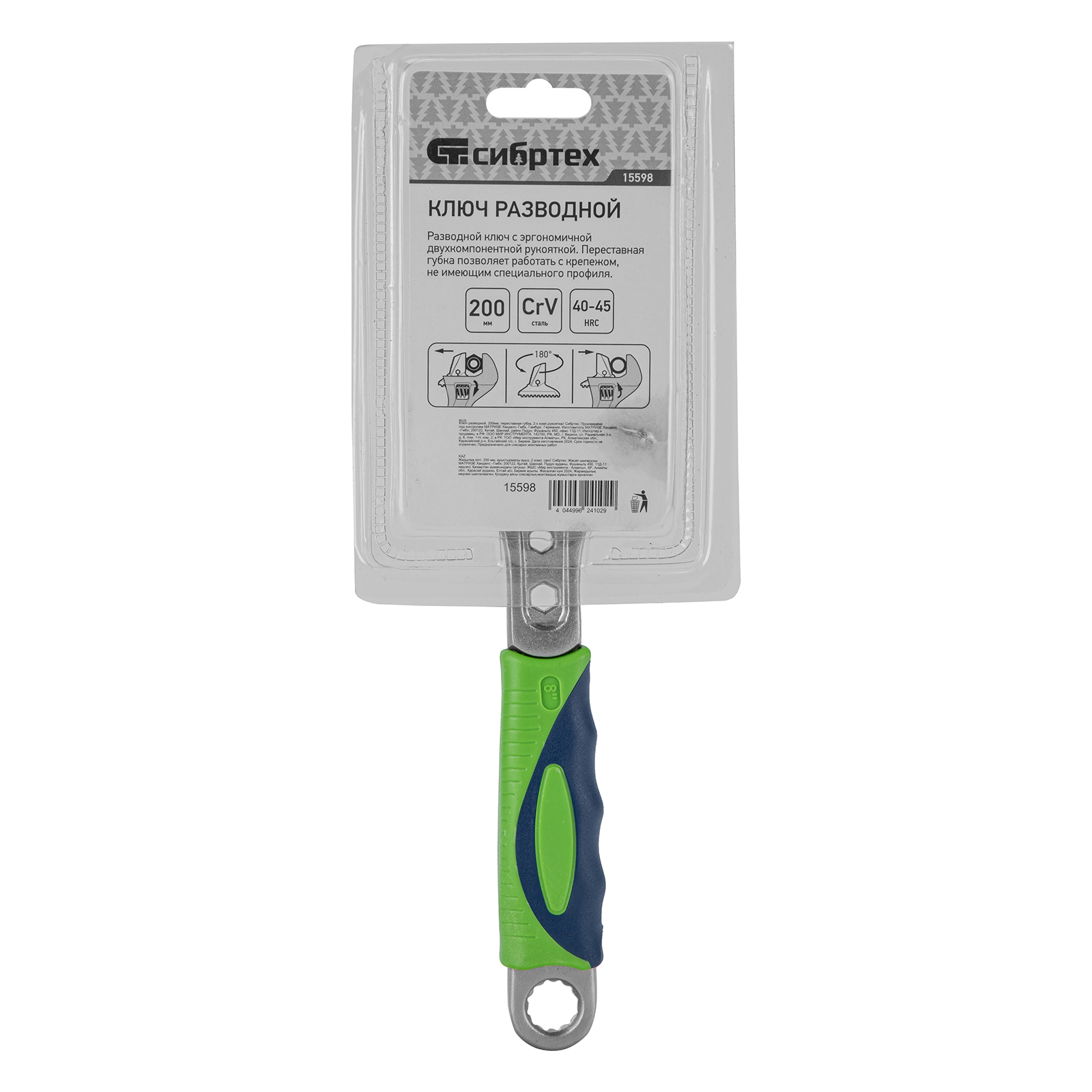 Ключ разводной, 200мм, переставная губка, 2-х комп.рукоятка Сибртех в Москве