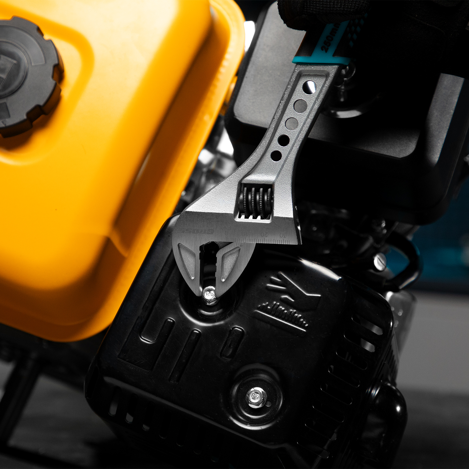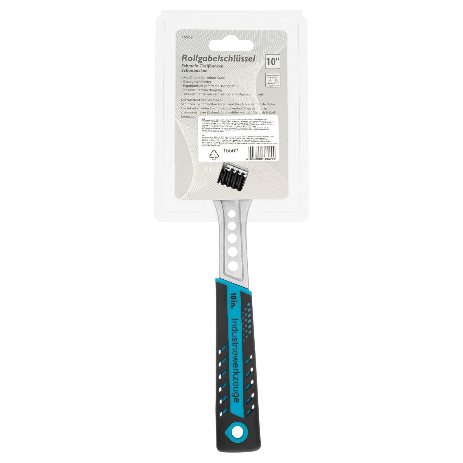 Разводной ключ Gross 15562 длиной 250 мм, из стали CrV, с двухкомпонентной ручкой, служит для монтажа и демонтажа крепежных элементов. Губки со специальными насечками надежно захватывают детали и не скользят по их поверхности. Максимальная ширина раскрытия губок составляет 35 мм, что позволяет работать с предметами разного размера и формы.