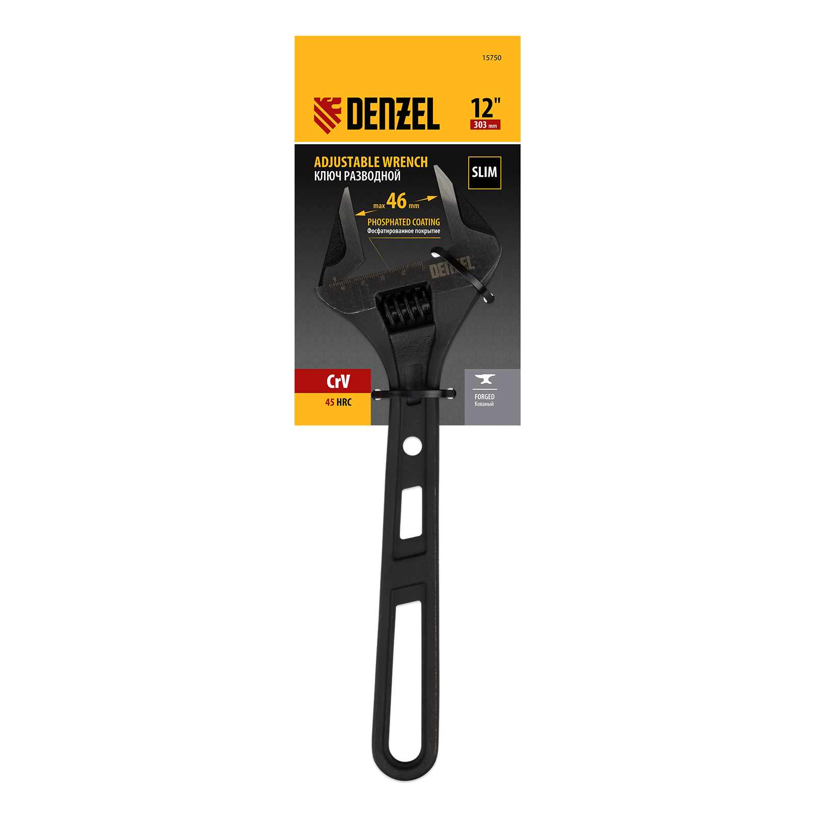 Ключ разводной кованый Denzel 15750 длиной 300 мм, из стали CrV, используется для монтажа и демонтажа крепежных элементов диаметром до 46 мм. Благодаря тонким губкам удобен для работы в труднодоступных местах. Имеет широкую область применения: сантехнические работы, мелкий бытовой ремонт, полупрофессиональная сфера и т. д.
