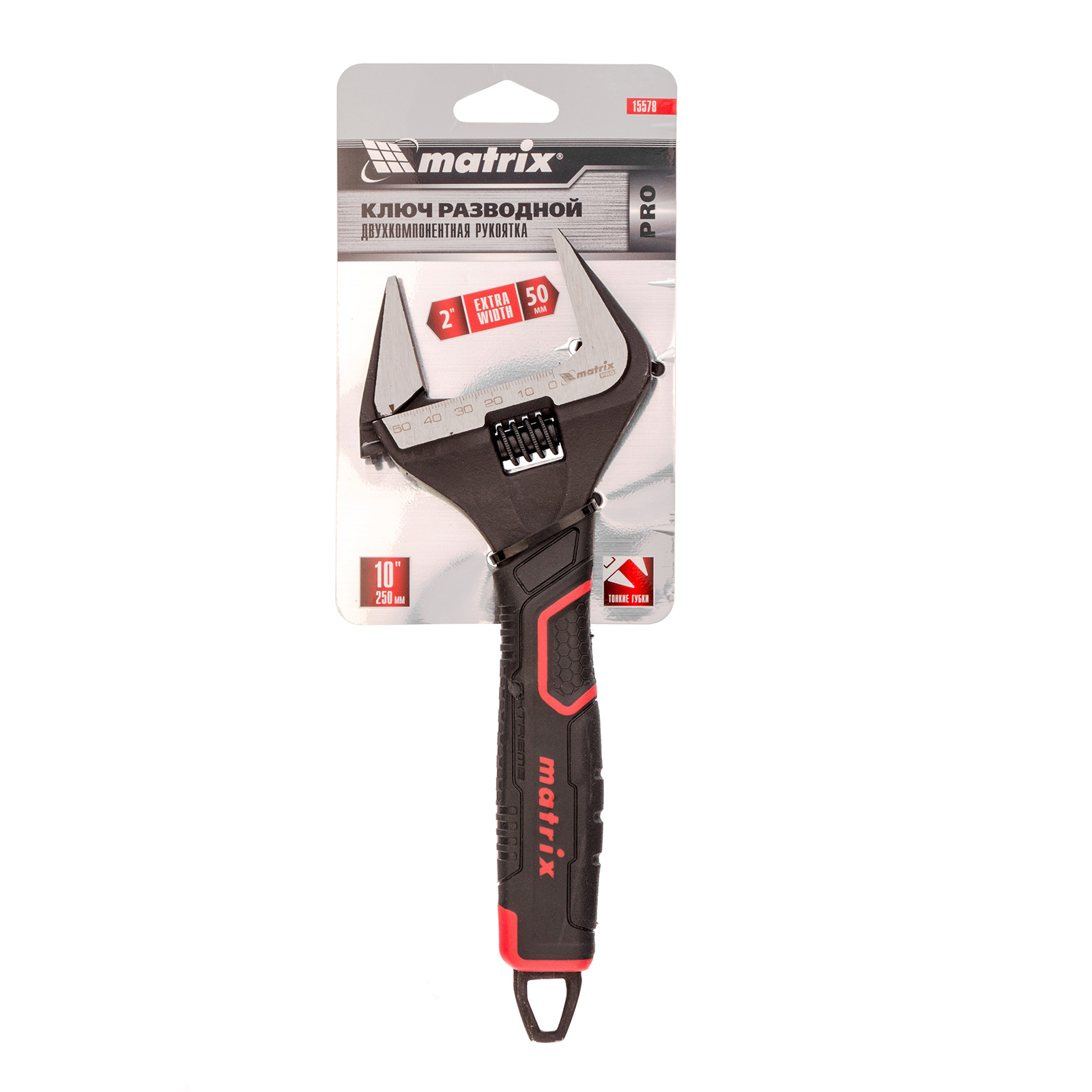 Ключ разводной, тонкие губки, фосфатированный, двухкомпонентная рукоятка, 250 мм, PRO Matrix в Москве
