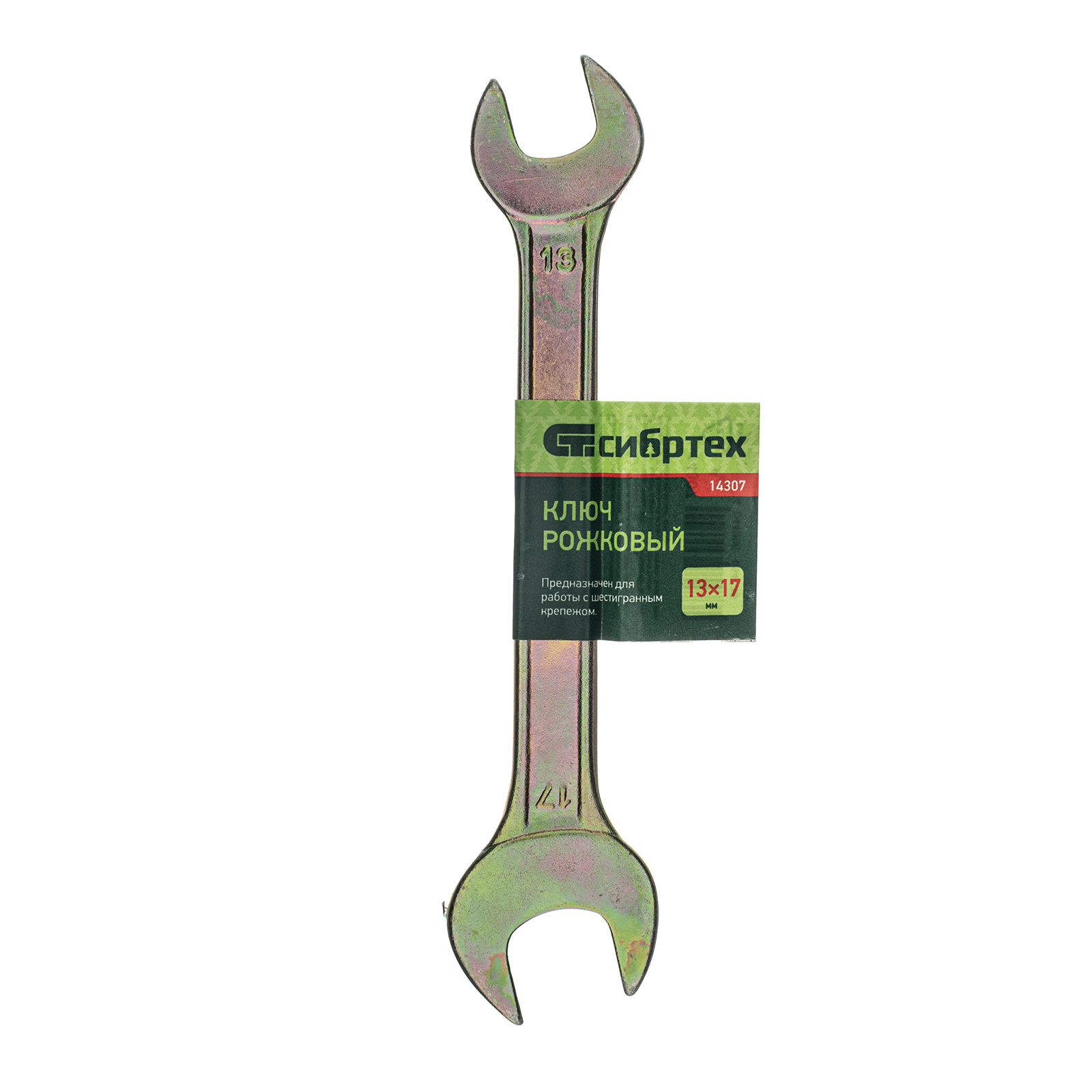 Рожковый ключ Сибртех 14307 с покрытием из желтого цинка имеет две рабочие части с размером зева 13 и 17 мм и предназначен для закручивания и откручивания резьбовых крепежей с шестигранными головками. Губки расположены под небольшим углом к оси тела ключа, что повышает удобство работы в ограниченном пространстве. Инструмент пригодится для проведения монтажных работ, сборки и разборки оборудования, ремонта техники, а также будет полезен в быту.