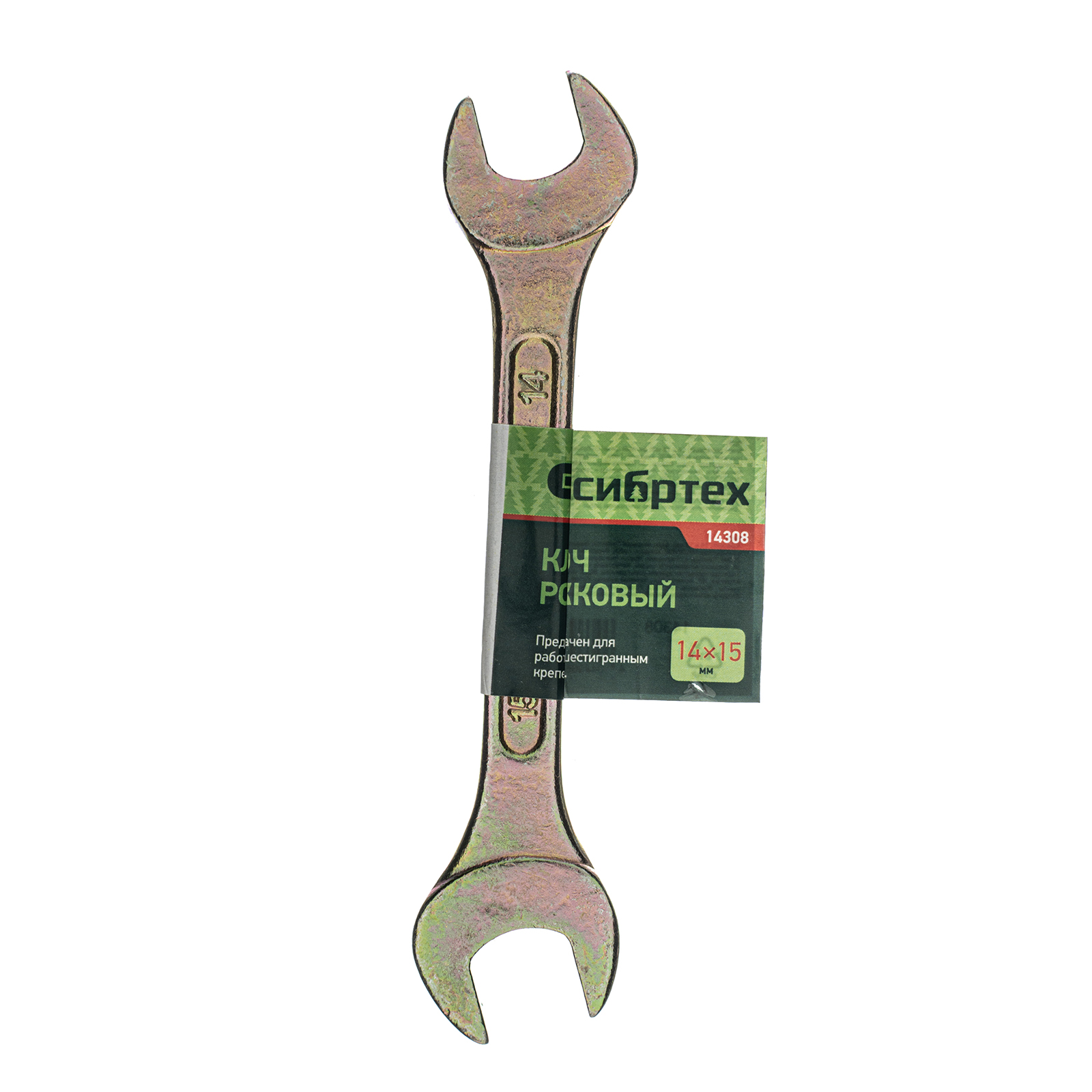Ключ рожковый, 14 х 15 мм, желтый цинк Сибртех в Москве