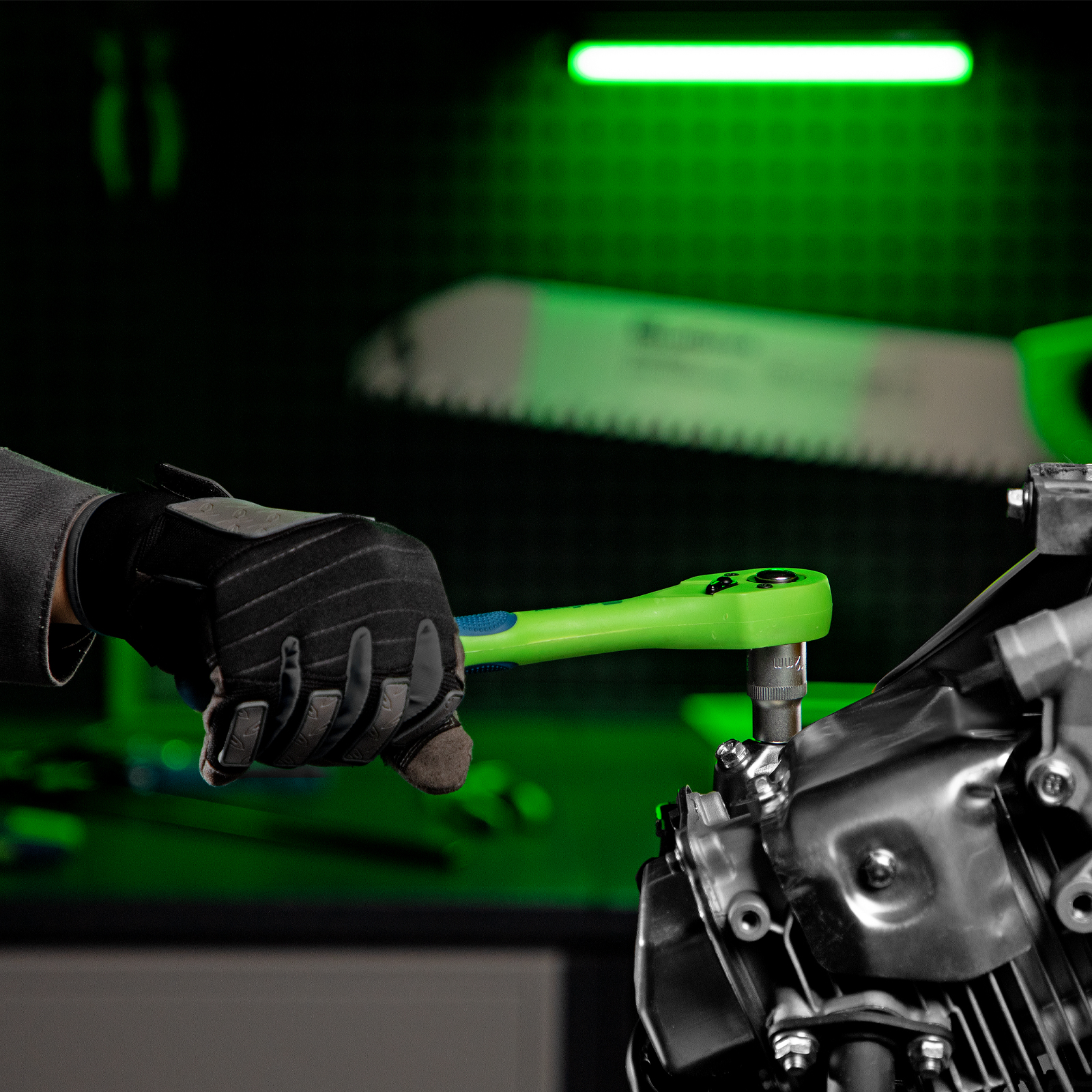 - Удобная работа в ограниченном пространстве — шаг трещотки составляет всего 5°.