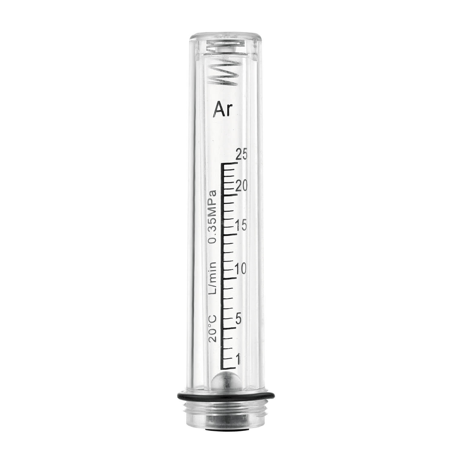 Колба выполнена из прозрачного пластика,  по нижнему краю расположена резьба М22х1,5 для подсоединения к MIXER 2Р. Внутри наружной колбы, размещена малая пластиковая колба для шарика-поплавка. На ней нанесена шкала расхода аргона, которая показывает расход газа. Диапазон измерений от 1 до 25.