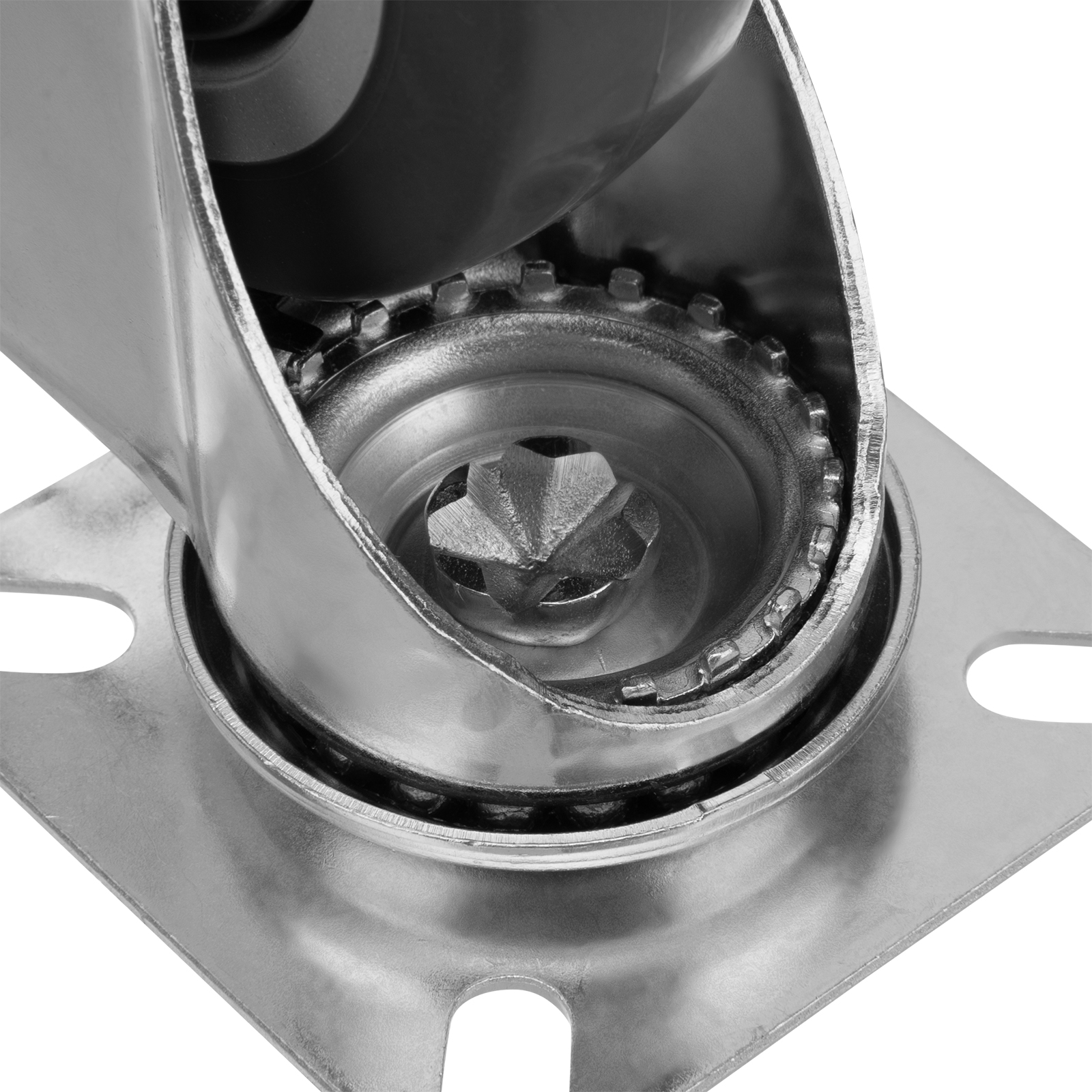 Колесо поворотное Сибртех 68721 диаметром 100 мм, грузоподъемностью 65 кг, с платформенным креплением и тормозом, — движущая часть ручных тележек стандартной и увеличенной грузоподъемности. Поворотный механизм позволяет тележке маневрировать. Устойчивость к высоким и низким температурам, влаге и ультрафиолету позволяет использовать колесо как на улице, так и в складских или производственных помещениях.