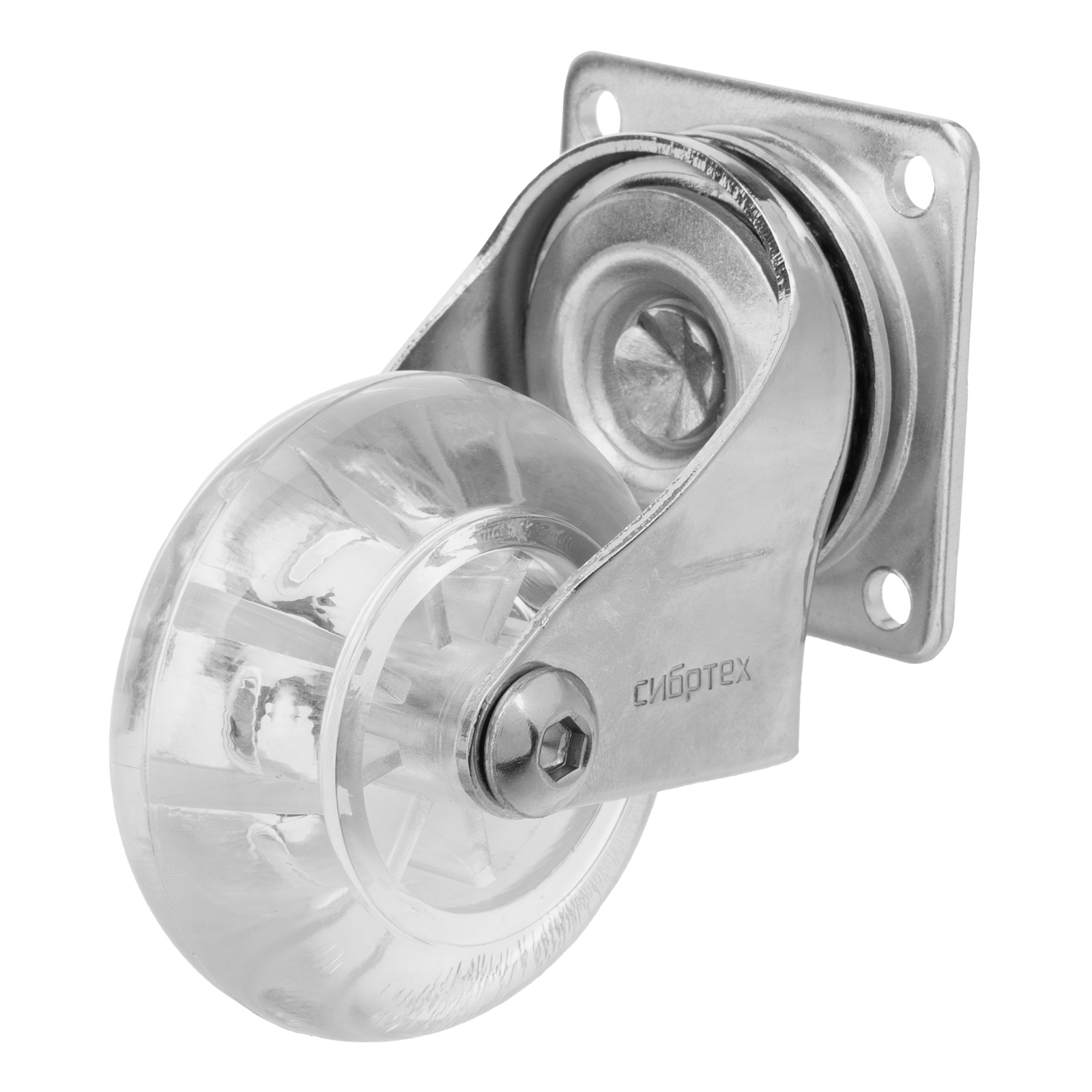 Колесо ПУ прозрачное поворотное d-50 мм, крепление платформенное Сибртех в Москве