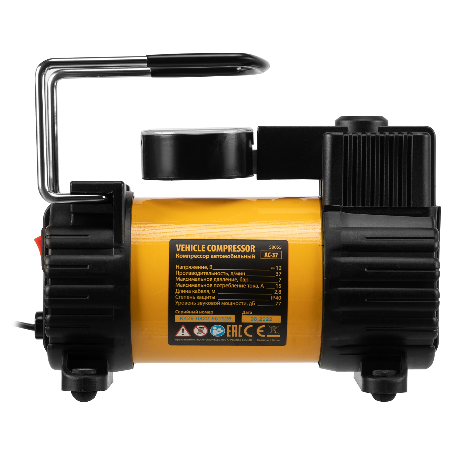 Компрессор автомобильный AC-37, 12 В, 7 атм, 37 л/мин, автомобильный предохранитель Denzel в Москве