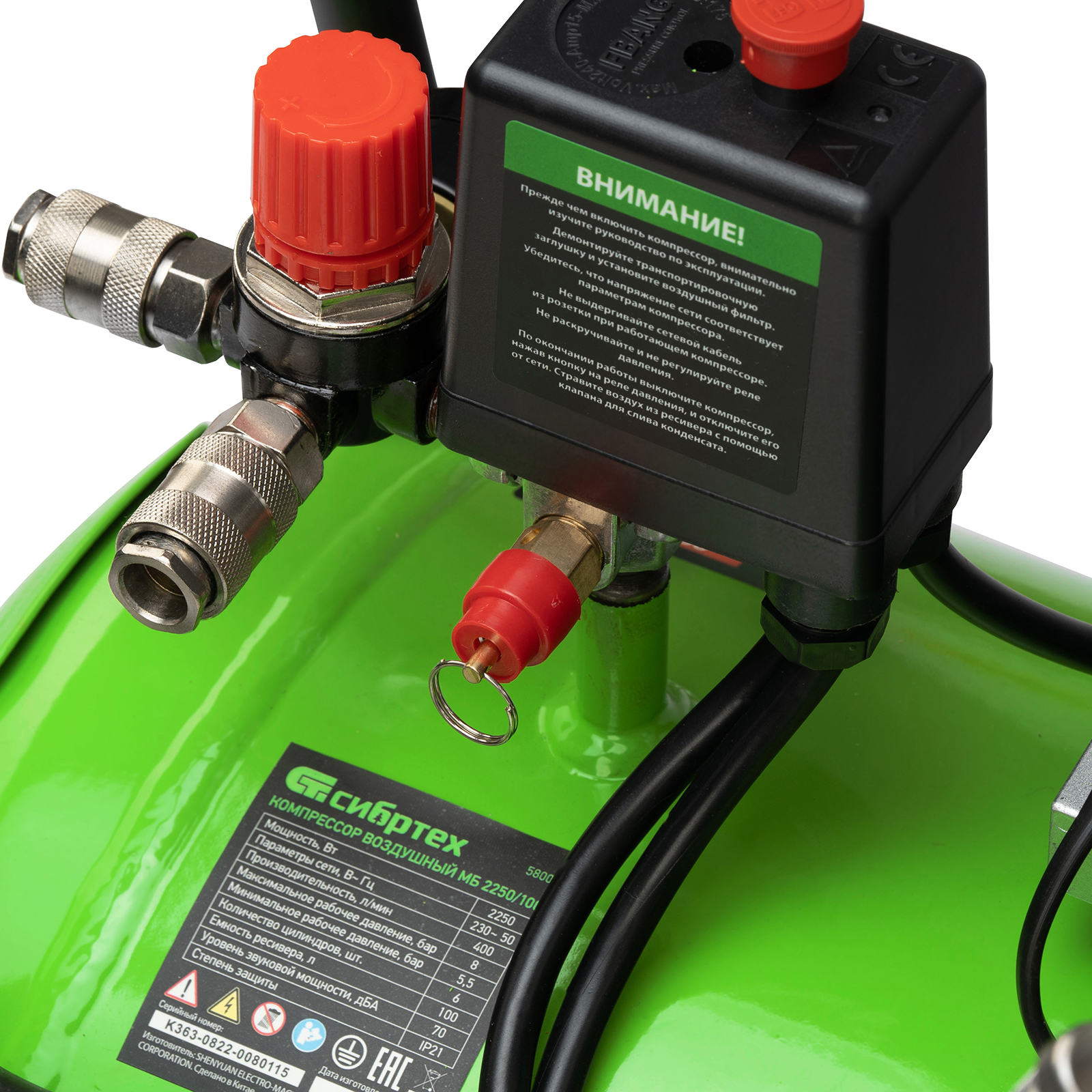 Компрессор безмаслянный малошумный МБ 2250/100, 2250 Вт, 100л, 400 л/мин Сибртех в Москве