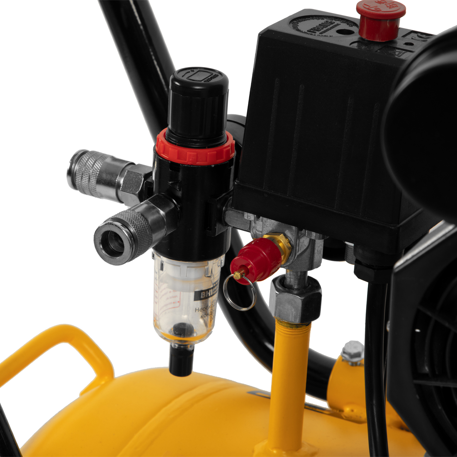 - Высокое качество очистки воздуха — фильтры надежно задерживают посторонние частицы, а влагоотделитель препятствует попаданию конденсата в пневмомагистраль.