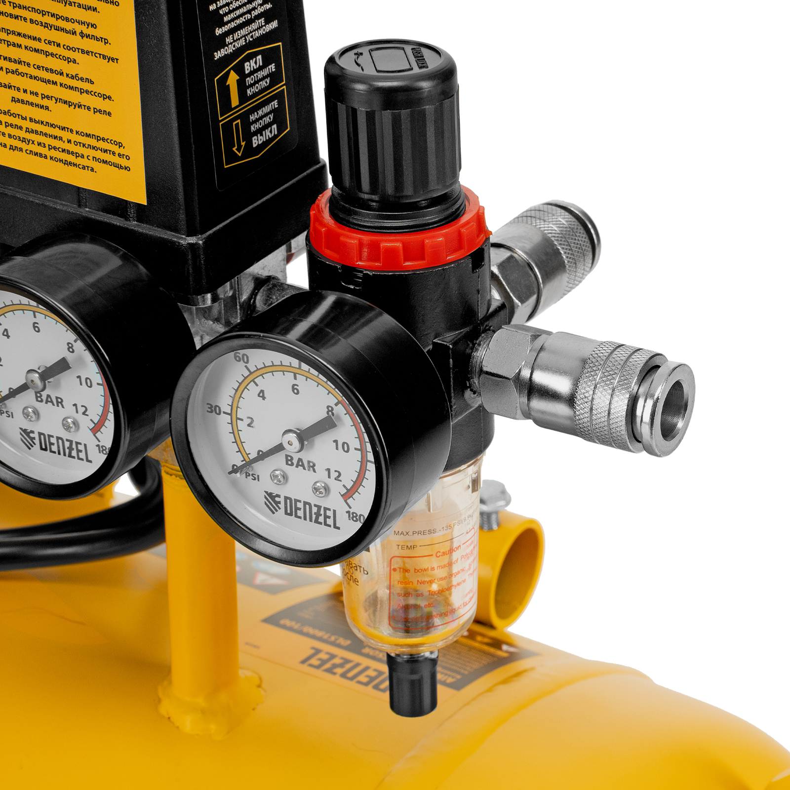 Компрессор безмасляный, малошумный DLS 1800/100,1800 Вт, 3x600, 100 л, 345 л/мин Denzel в Москве