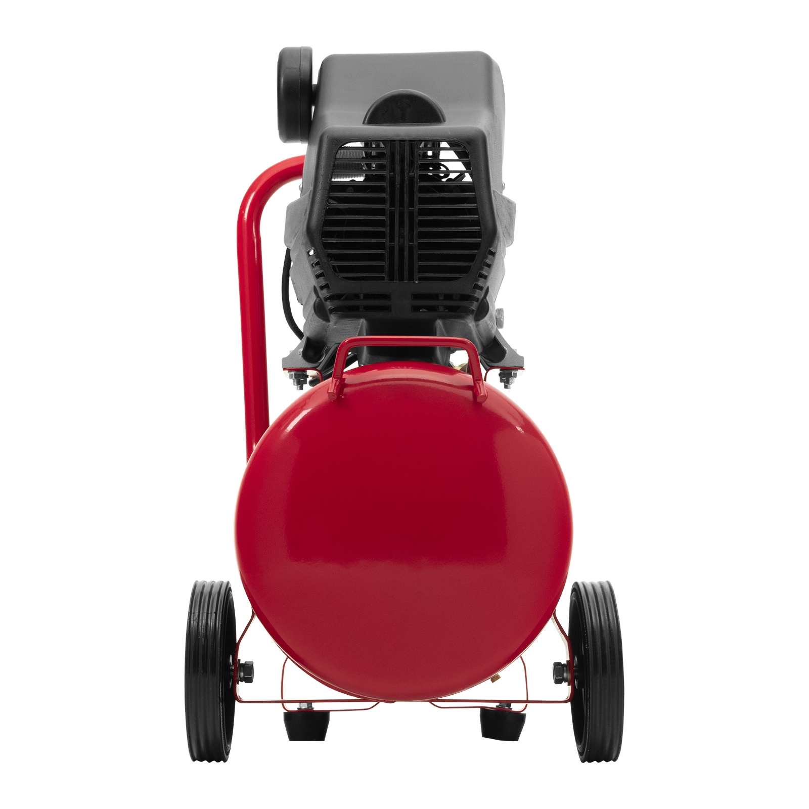 - Мобильность — колеса и рукоятка с нескользящим покрытием облегчают перемещение компрессора по рабочей площадке.