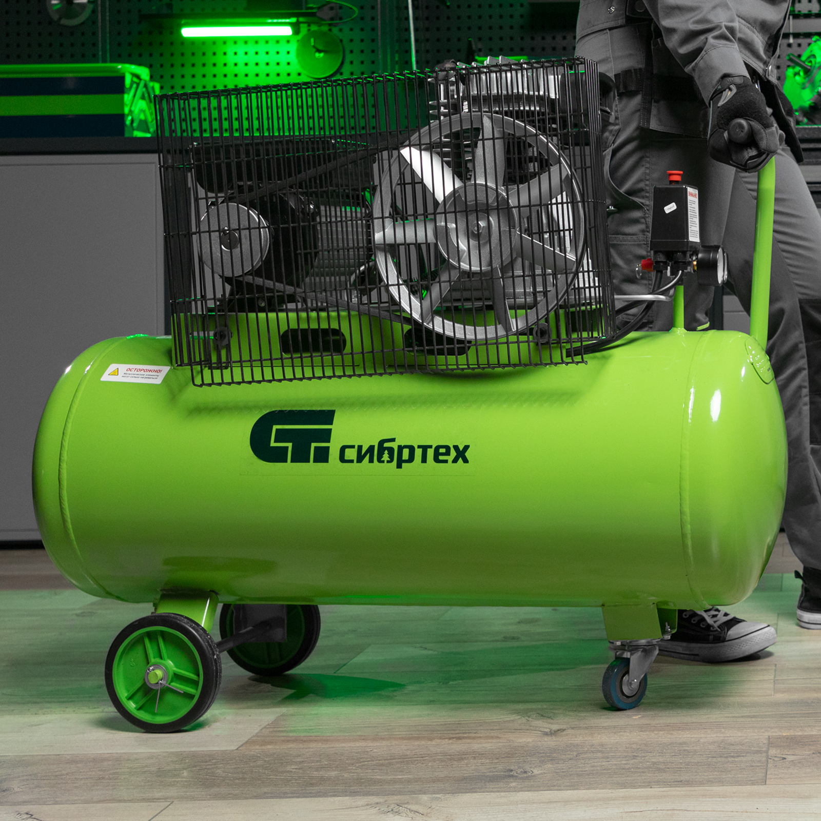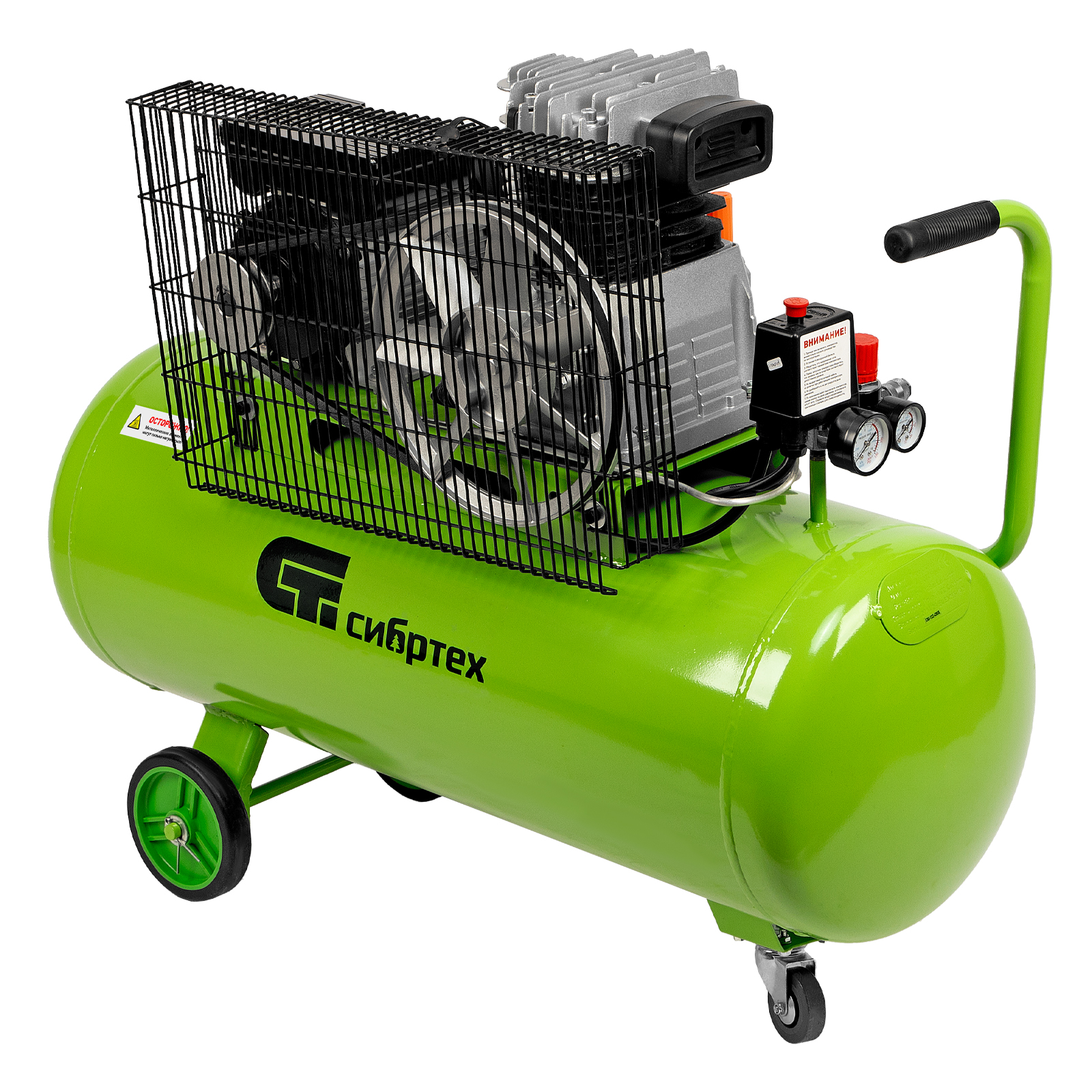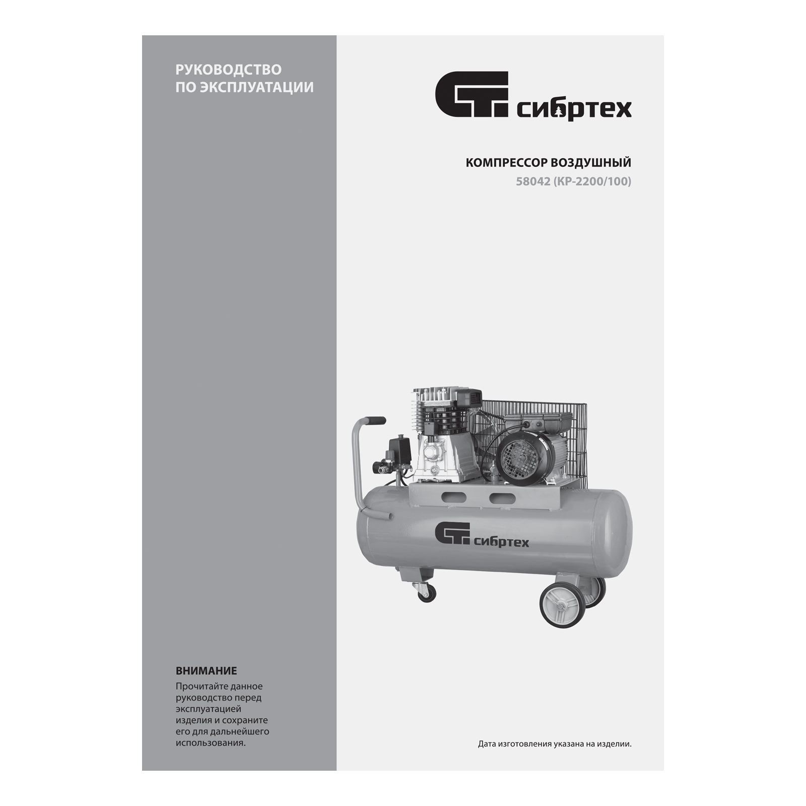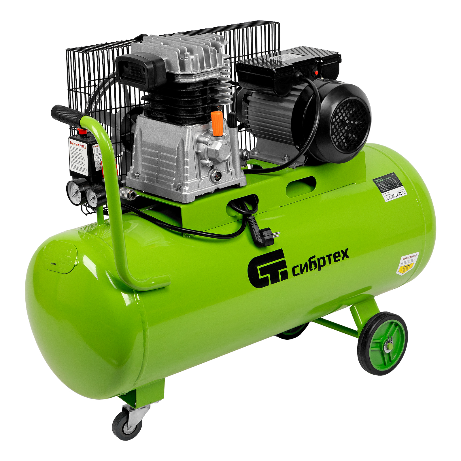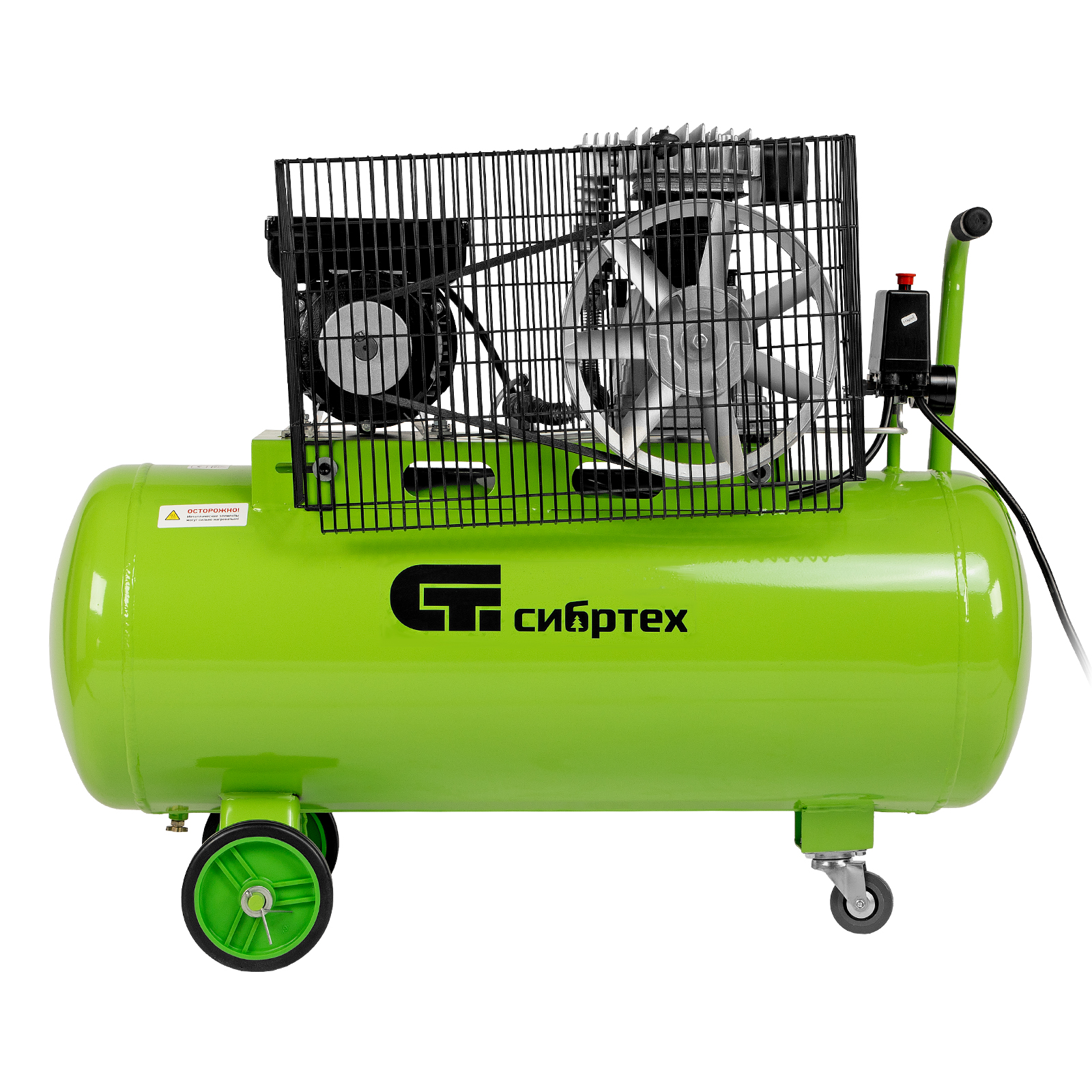 Компрессор воздушный КР-2200/100, 2.2 кВт, 350 л/мин, 100 л, ременной привод, масляный Сибртех в Москве