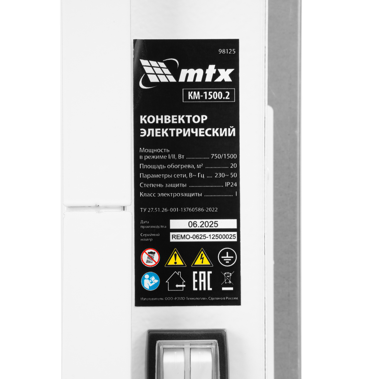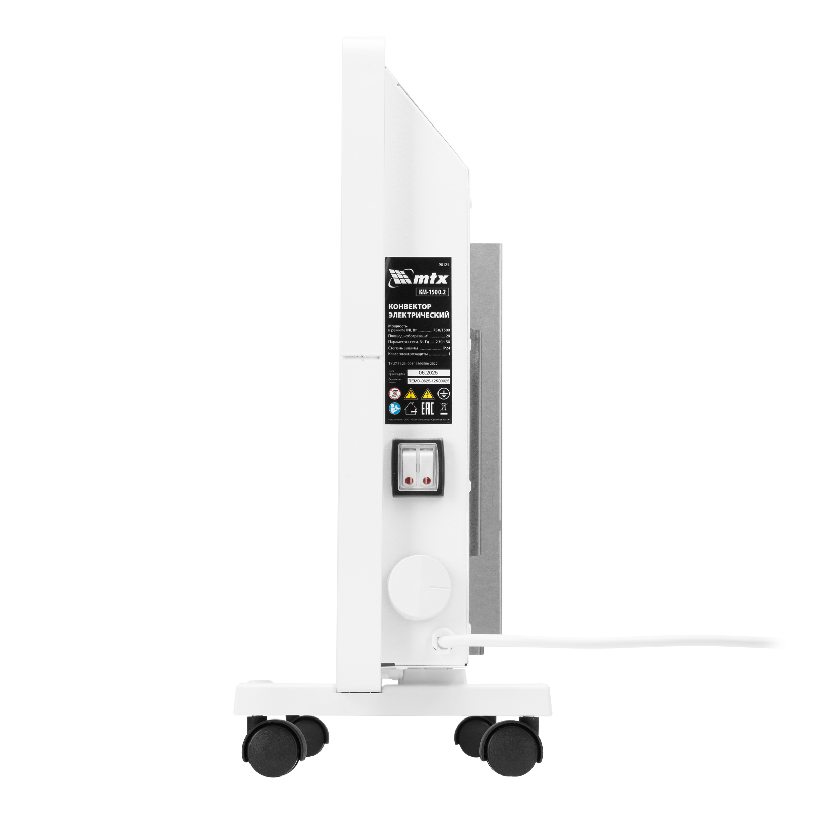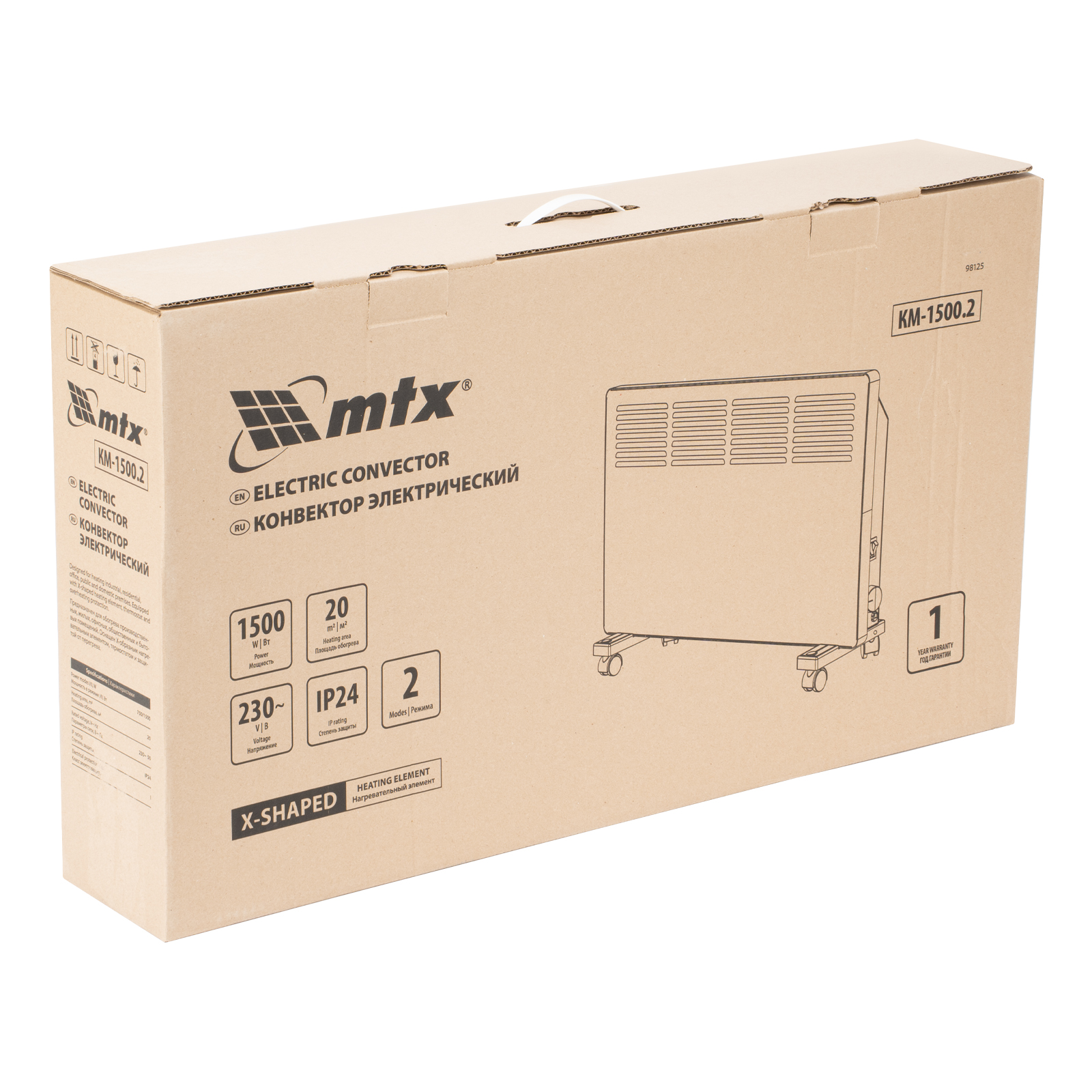 Конвектор электрический КМ-1500.2, 230 В, 1500 Вт, X-образный нагреватель, колеса, термостат MTX в Москве