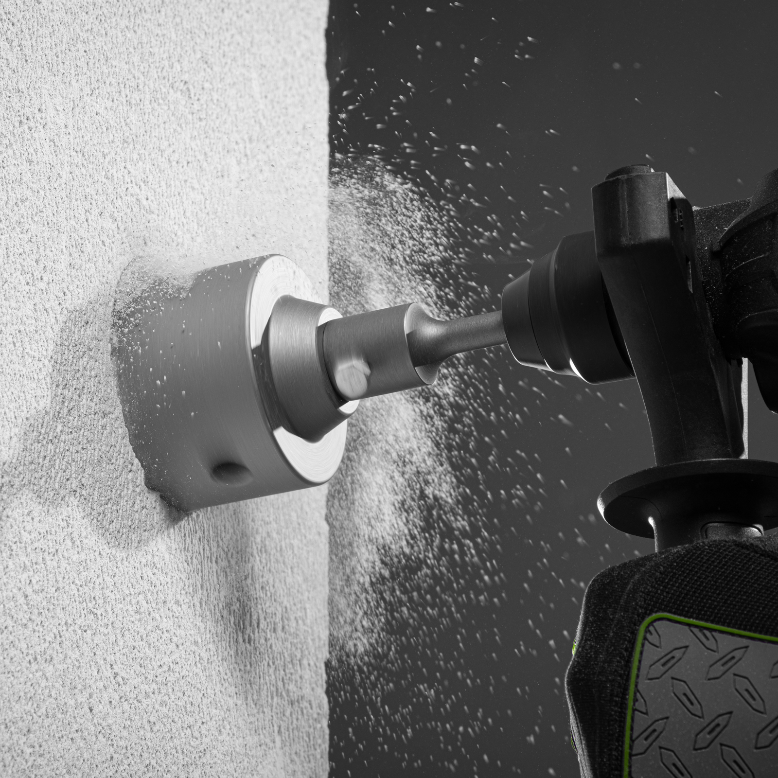 - Ровные отверстия — гладкий корпус коронки уменьшает трение, а центрирующее сверло предотвращает смещение коронки.