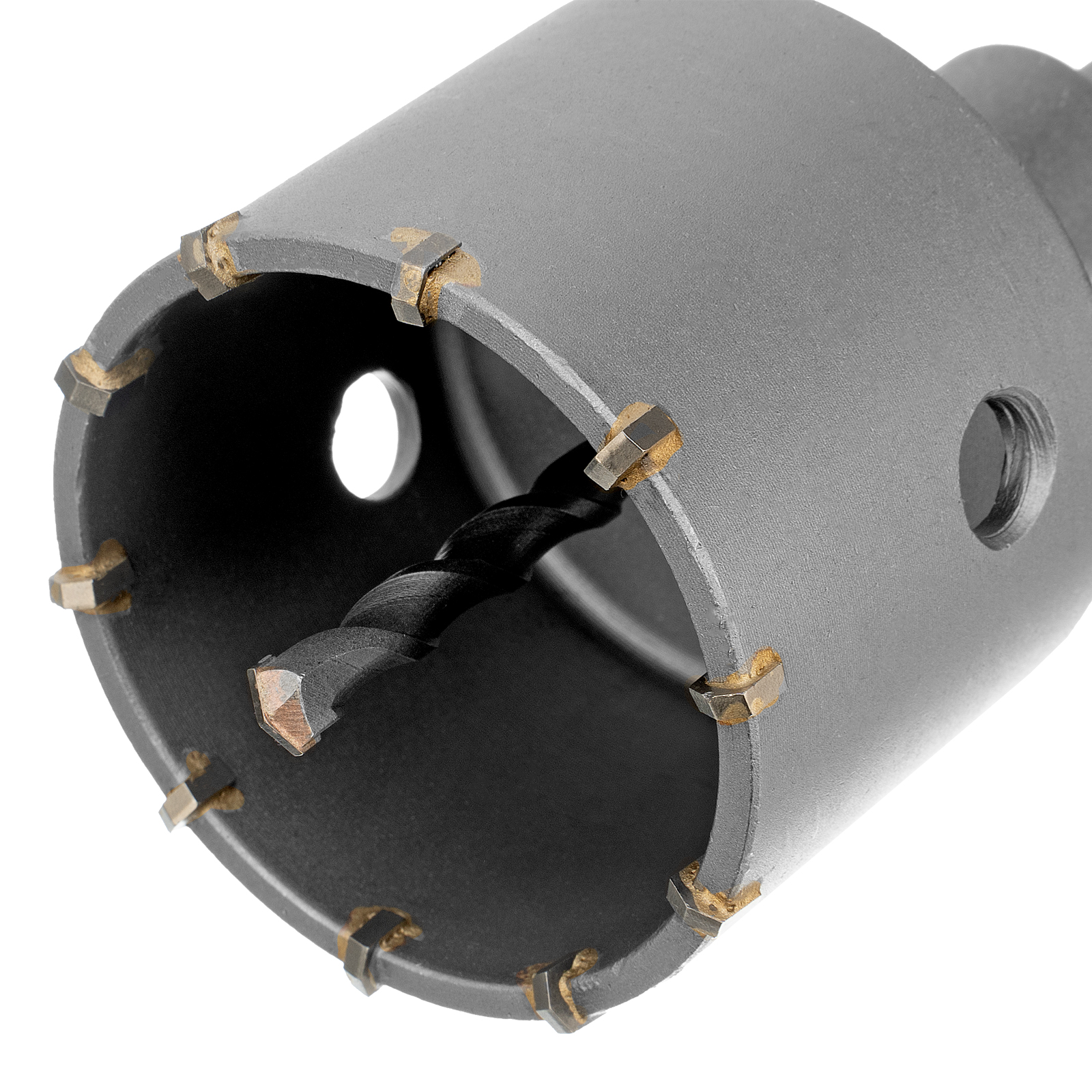 Коронка по бетону М22 х 73 мм Сибртех 703317 в сборе с хвостовиком устанавливается на ударную дрель или перфоратор с патроном SDS PLUS. Позволяет получить отверстия в бетоне, кирпиче, граните, камне. Коронка пригодится при установке розеток и выключателей.
