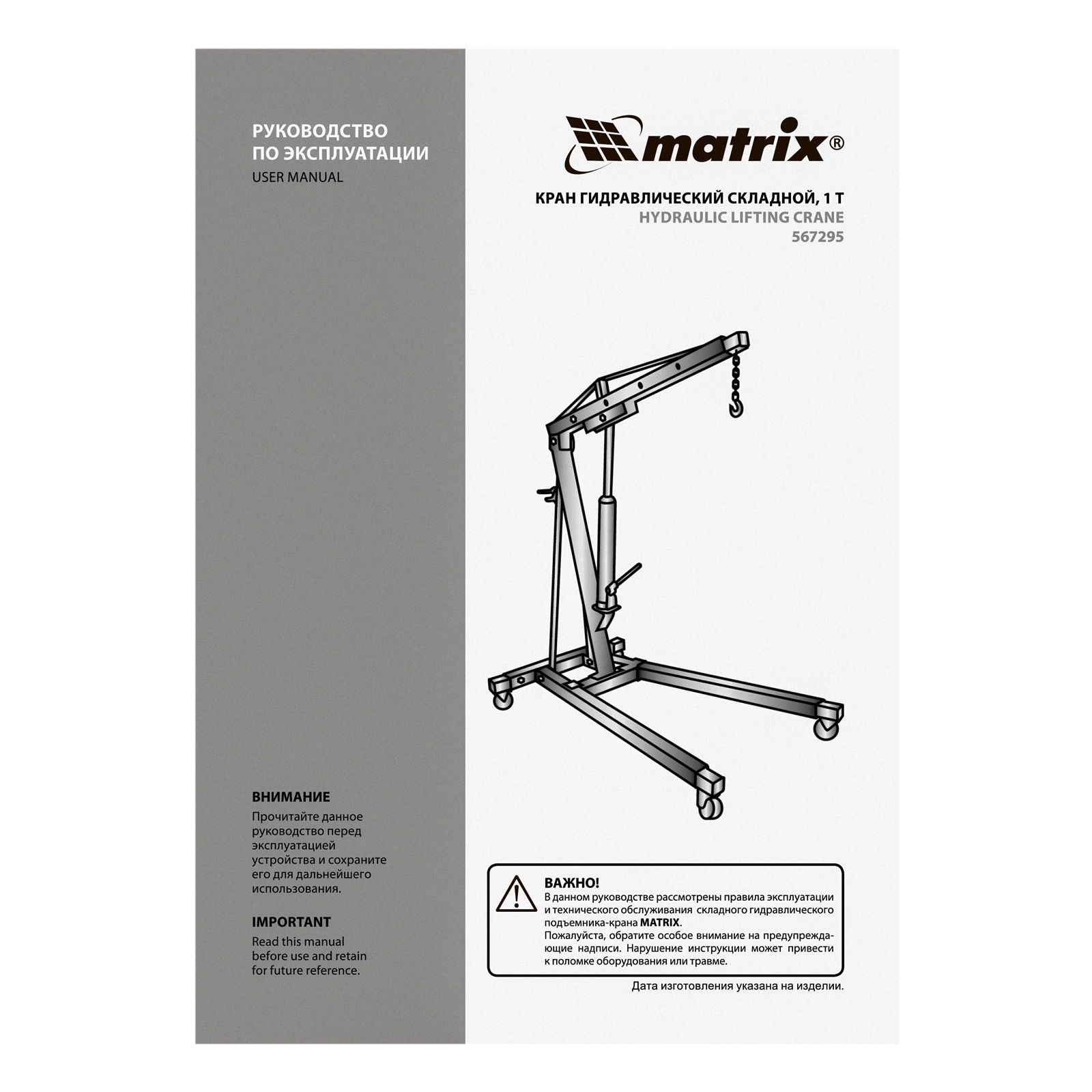 Кран гидравлический, 1 т, H подъема 25-2060 мм, складной (комплект из 2 частей) Matrix в Москве