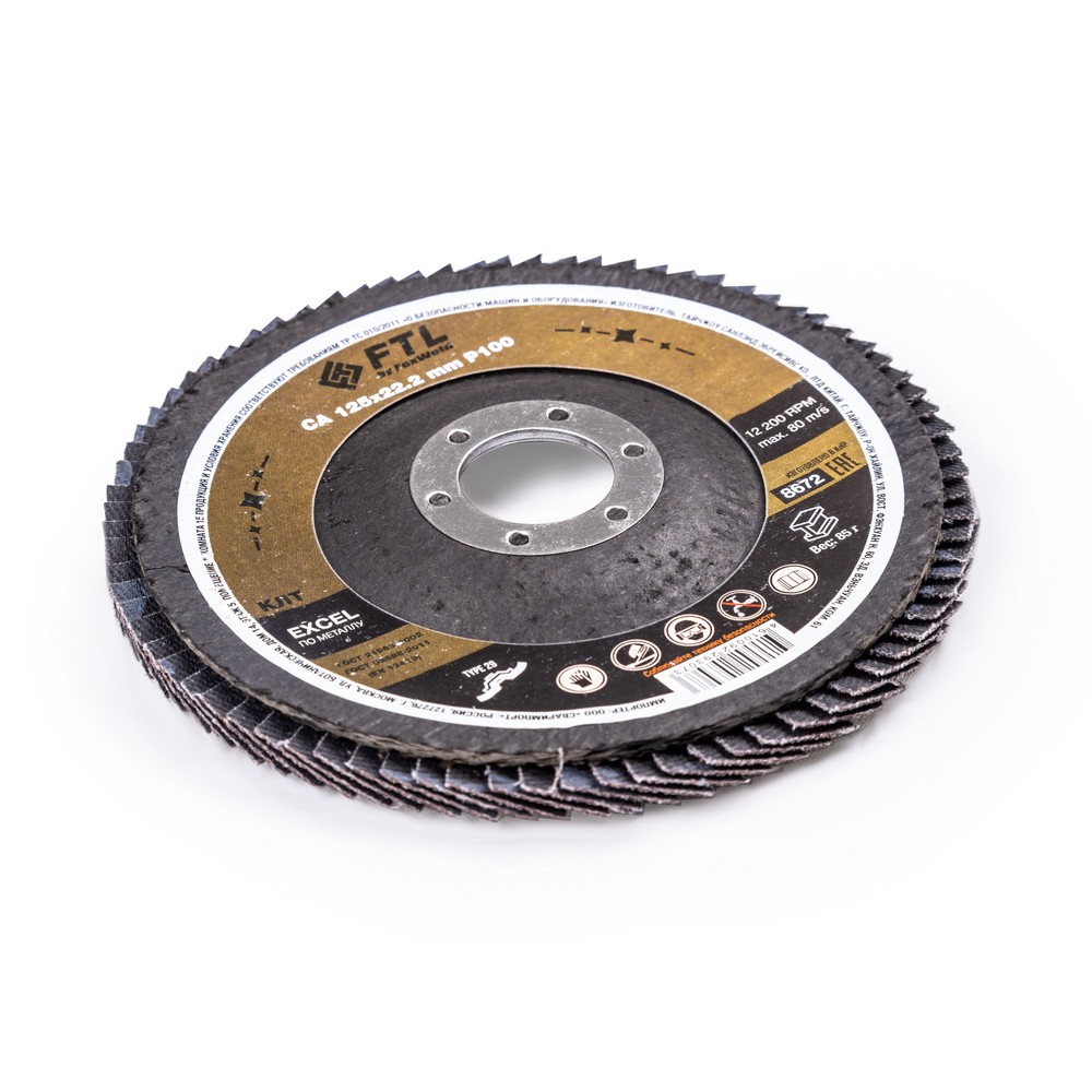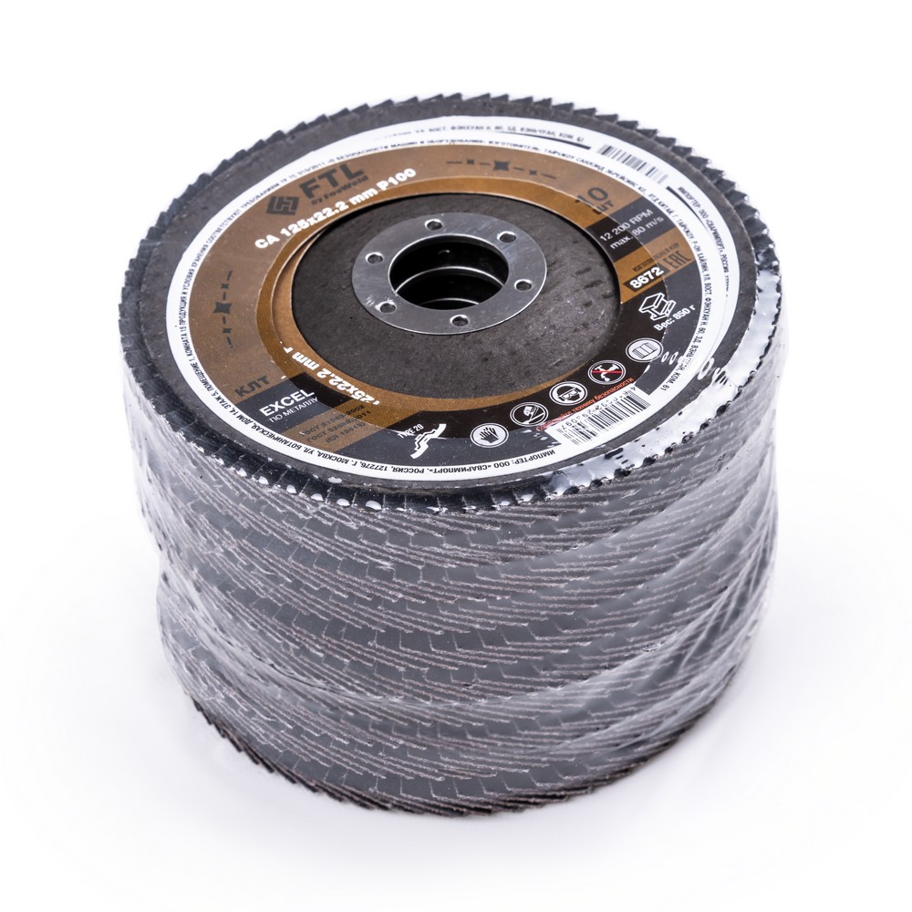 Лепестковый диск для шлифования по металлу FTL Excel 29 125 х 22,2 мм P100 – это расходный материал для ручной угловой шлифовальной машины при работе с изделиями из чёрных металлов, чугуна. Также подходит для обработки древесины. Диск предназначен для шлифовки и обдирки разных видов поверхностей, зачистки сварных швов, арматуры, профильных труб, стальных уголков, швеллера, удаления краски, ржавчины, обработки кромок. Коническая форма куполообразного диска (тип 29 или КЛТ2) обеспечивает большое пятно контакта с поверхностью и более агрессивный съём материала. Оптимальный угол работы для конического КЛТ - от 15 до 25 градусов к поверхности. Серия EXCEL – это премиальный по сочетанию свойств абразивный состав для чёрных металлов на базе кальцинированного оксида алюминия. Добавление кальция в состав абразива увеличивает сопротивление высокой температуре и замедляет износ режущих зёрен. Такие круги работают дольше и с большим прижимом (требуется УШМ от 1000 Вт). (!) Не рекомендуется для работы по изделиям из нержавеющей стали.ИЗНОСОСТОЙКОСТЬ: Благодаря премиальной формуле режущая и шлифовальная способность абразива снижается в процессе работы значительно медленнее, позволяя выполнить больше работы.ЭФФЕКТИВНАЯ РАБОТА С СИЛЬНЫМ ПРИЖИМОМ: Машинная сборка при производстве исключает ошибки при наклеивании лепестков на основание диска, а плотная набивка обеспечивает более сильный прижим во время работы.УНИКАЛЬНЫЙ СОСТАВ: Материал абразива кальцинированный оксид алюминия (глинозём) — это корунд с добавлением кальция для лучшего сопротивления высокой температуре и продления срока службы диска.ДВОЙНОЕ МЕТАЛЛИЧЕСКОЕ КОЛЬЦО: Двойное металлическое кольцо на диске обеспечивает плотную посадку на фланец УШМ, исключая биения и вибрацию при работе.ГЕРМЕТИЧНОСТЬ УПАКОВКИ: Диски упакованы в специальную термоусадочную герметичную плёнку, которая предохраняет от пыли и влаги при длительном хранении в условиях повышенной влажности, на строительных объектах и крупных промышленных производствах.ПРЕИМУЩЕСТВА:Для работы с чёрным металлом, чугуном, деревомТип профиля 29 (куполообразный, конической формы)Максимальное пятно контакта с поверхностью для более агрессивного съёма материалаПремиальный состав абразиваЭлектростатический метод нанесения абразиваВысокая износостойкость (долгий срок службы)Состав на базе кальцинированного оксида алюминияВозможность работы с большим прижимом (требуется мощная УШМ)Фибергласс – прочное стекловолоконное основание дискаДвойное металлическое кольцо для плотной посадки на фланец УШМКОМПЛЕКТАЦИЯ: Круг лепестковый для шлифования по металлу FTL Excel 29 125 х 22,2 мм P100 в термоусадочной плёнке со вкладышем в дополнительном ПЭ пакете – 10 шт.