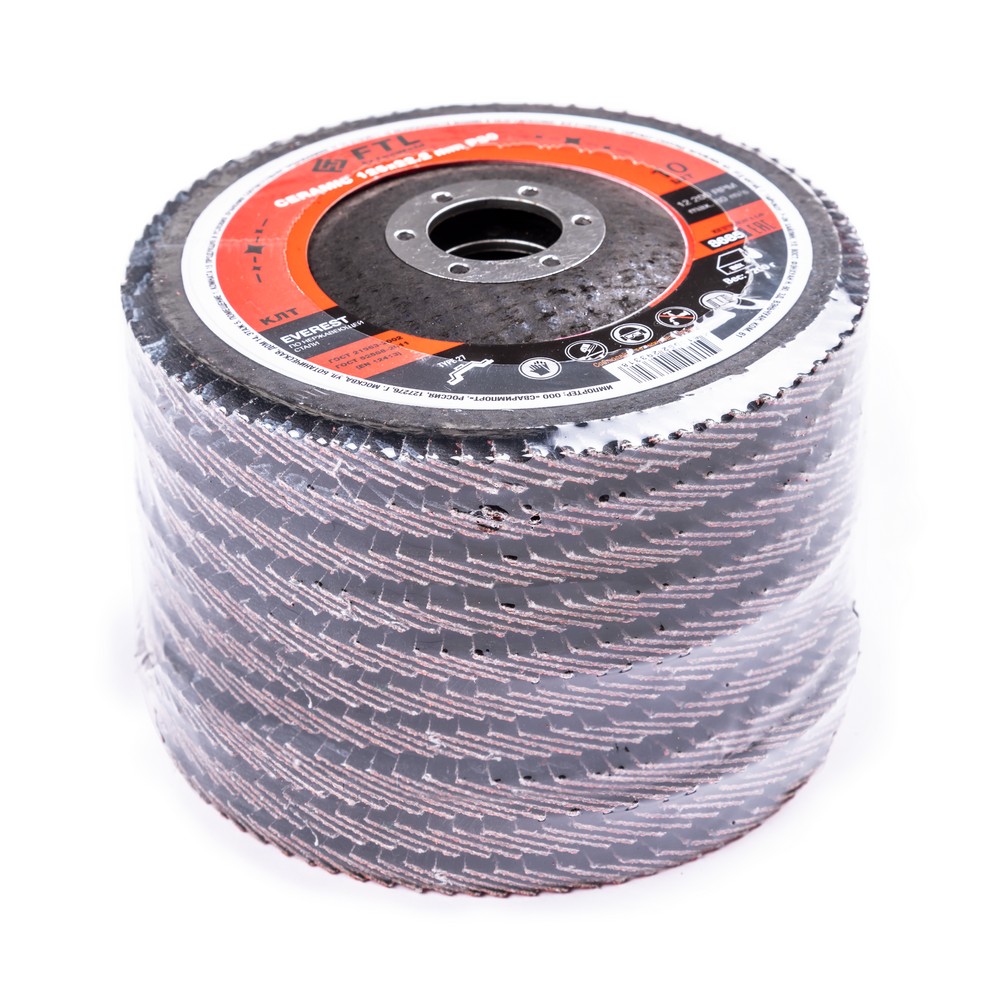 Круг лепестковый с керамическим абразивом для шлифования по нержавеющей стали FTL Everest 27 125 х 22,2 мм P80