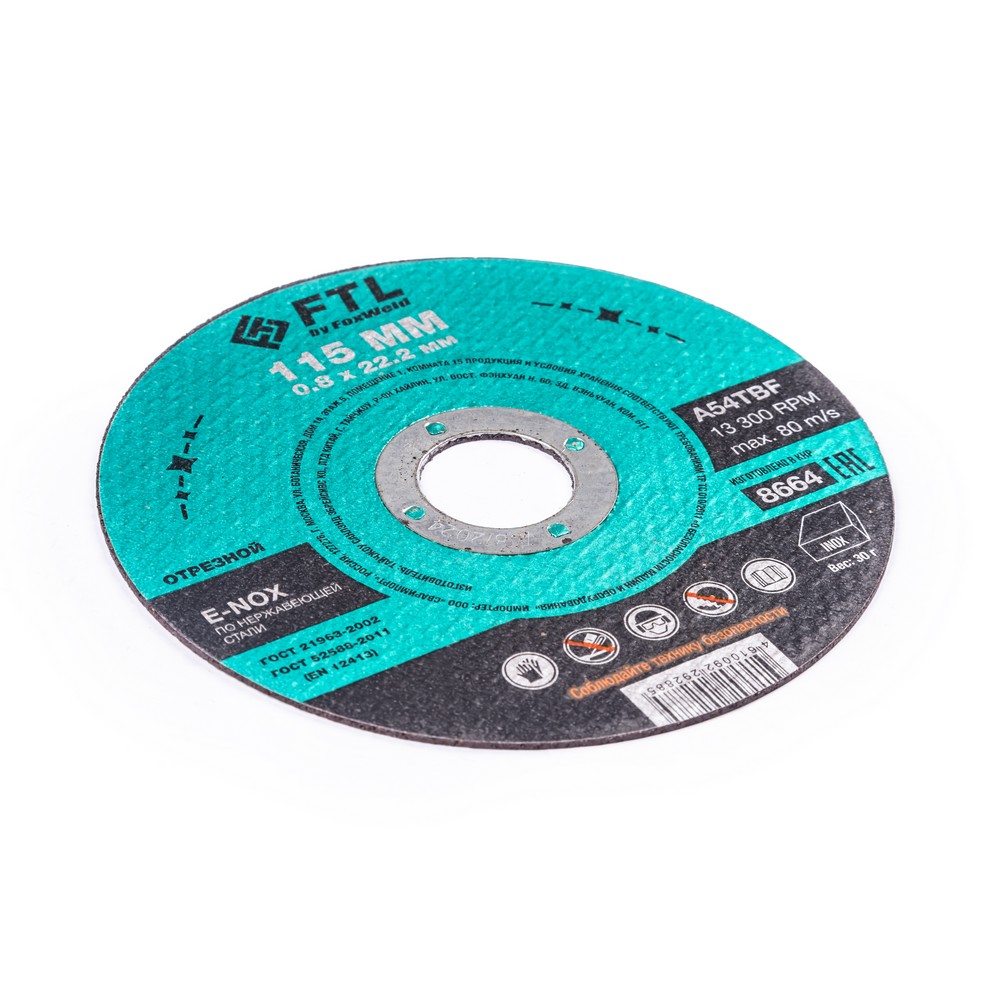 Круг отрезной по нержавеющей стали FTL E-Nox 115 х 0,8 х 22,2 мм A54TBF