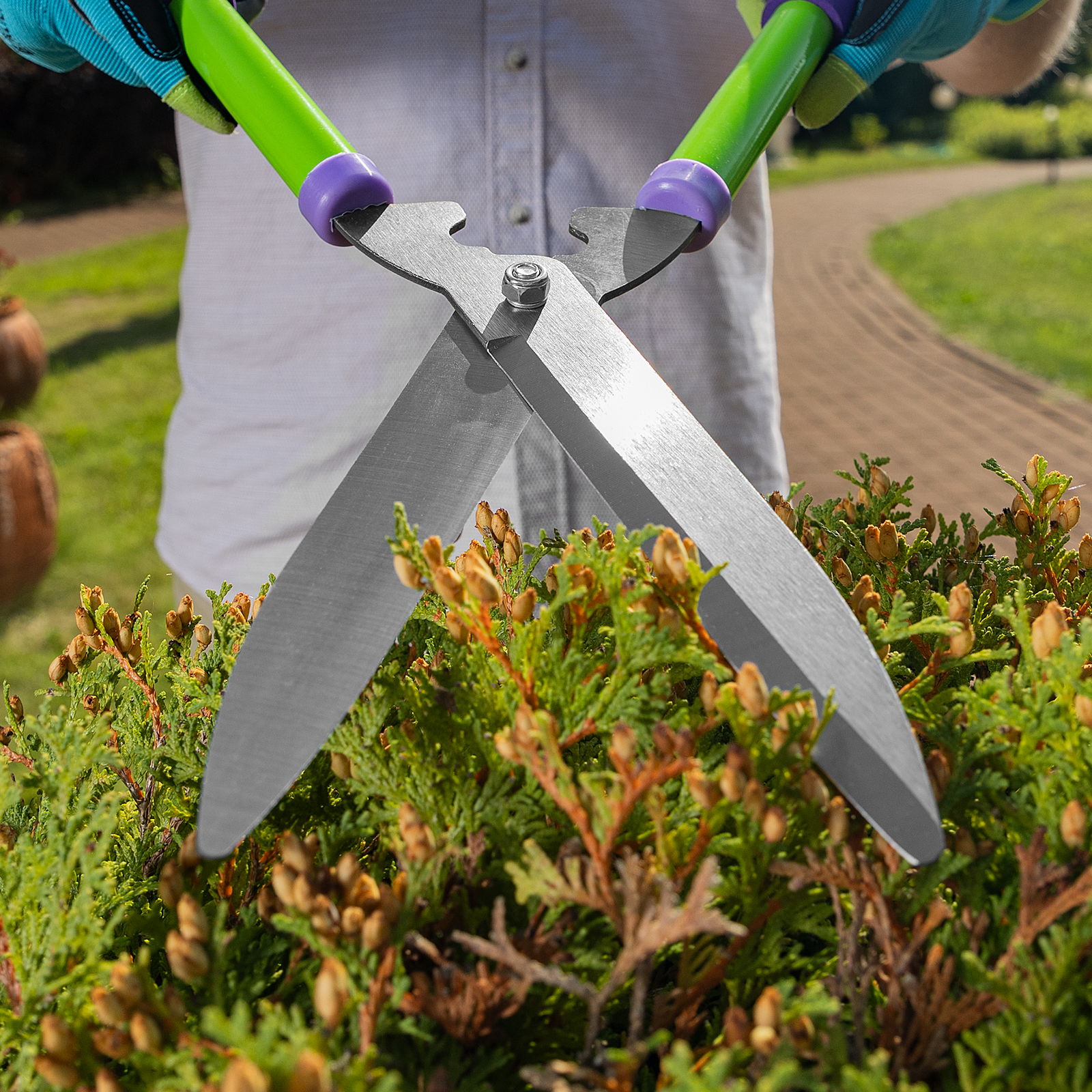 Кусторез Palisad 60562 длиной 500 мм, со стальными обрезиненными рукоятками, пригодится садоводам для ухода за участком. Поможет поддерживать аккуратный вид кустарников и живых изгородей. Кусторез подходит для подрезания молодых веток толщиной до 10 мм с целью омоложения и придания им нужной формы.