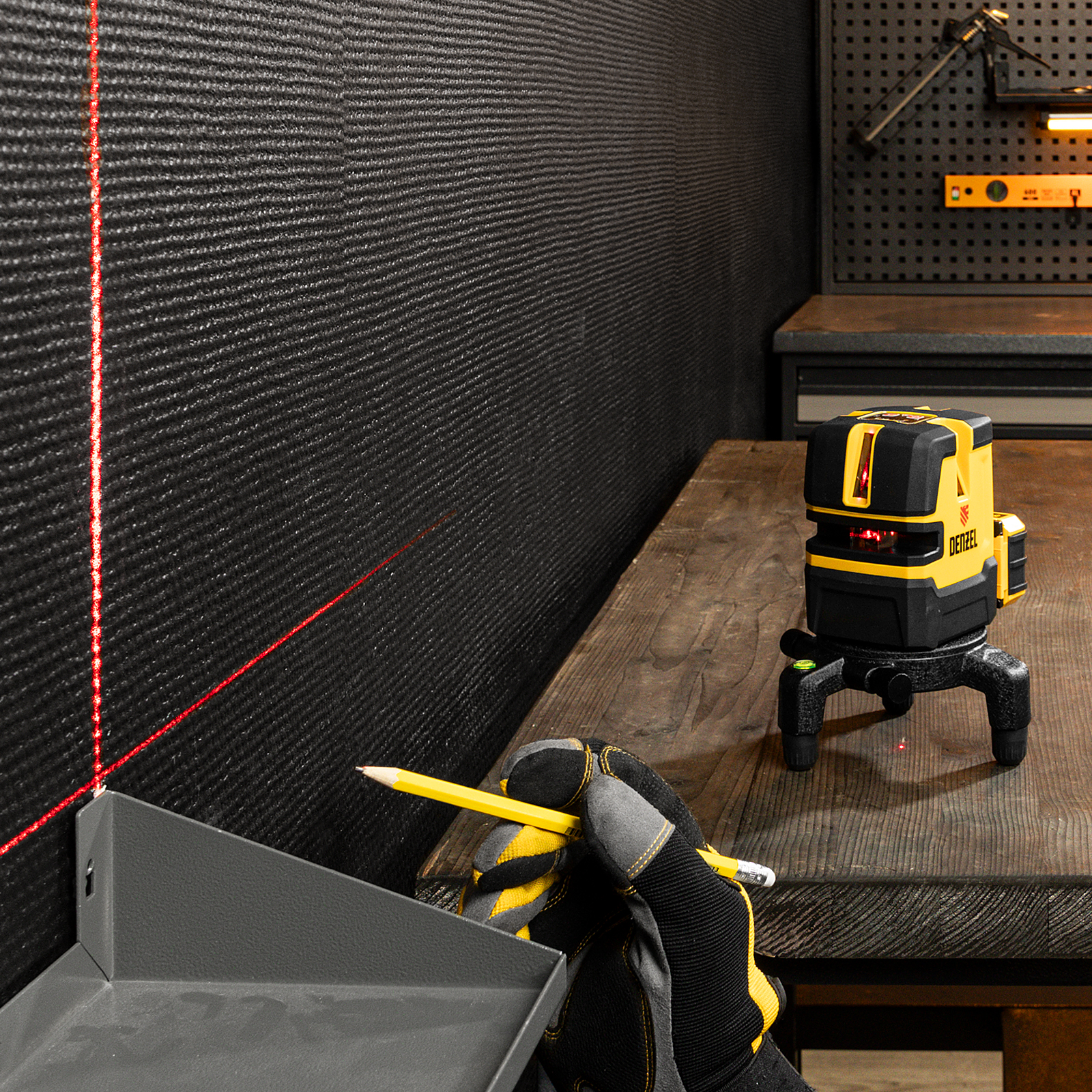Лазерный уровень Denzel LX 05 Red 35071 предназначен для построения линий разметки на стенах, полу и потолке при проведении строительно-ремонтных работ. Благодаря длине волны лазера 635 Нм дальность проецирования уровня составляет 20 м. Уровень проецирует на поверхности точку отвеса, 4 вертикальных и 1 горизонтальную линию. Функция автоматического выравнивания имеет высокую точность ±0,3мм/м. Угол развертки прибора составляет 240 градусов.