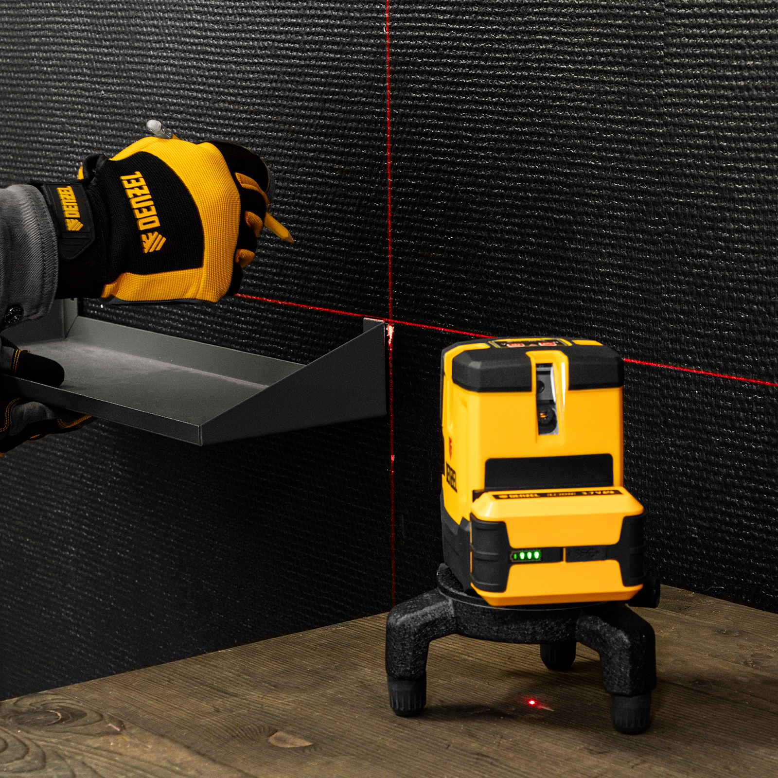 - Резьба под штатив 5/8 дюйма — лазерный уровень удобно использовать при работах на разной высоте.