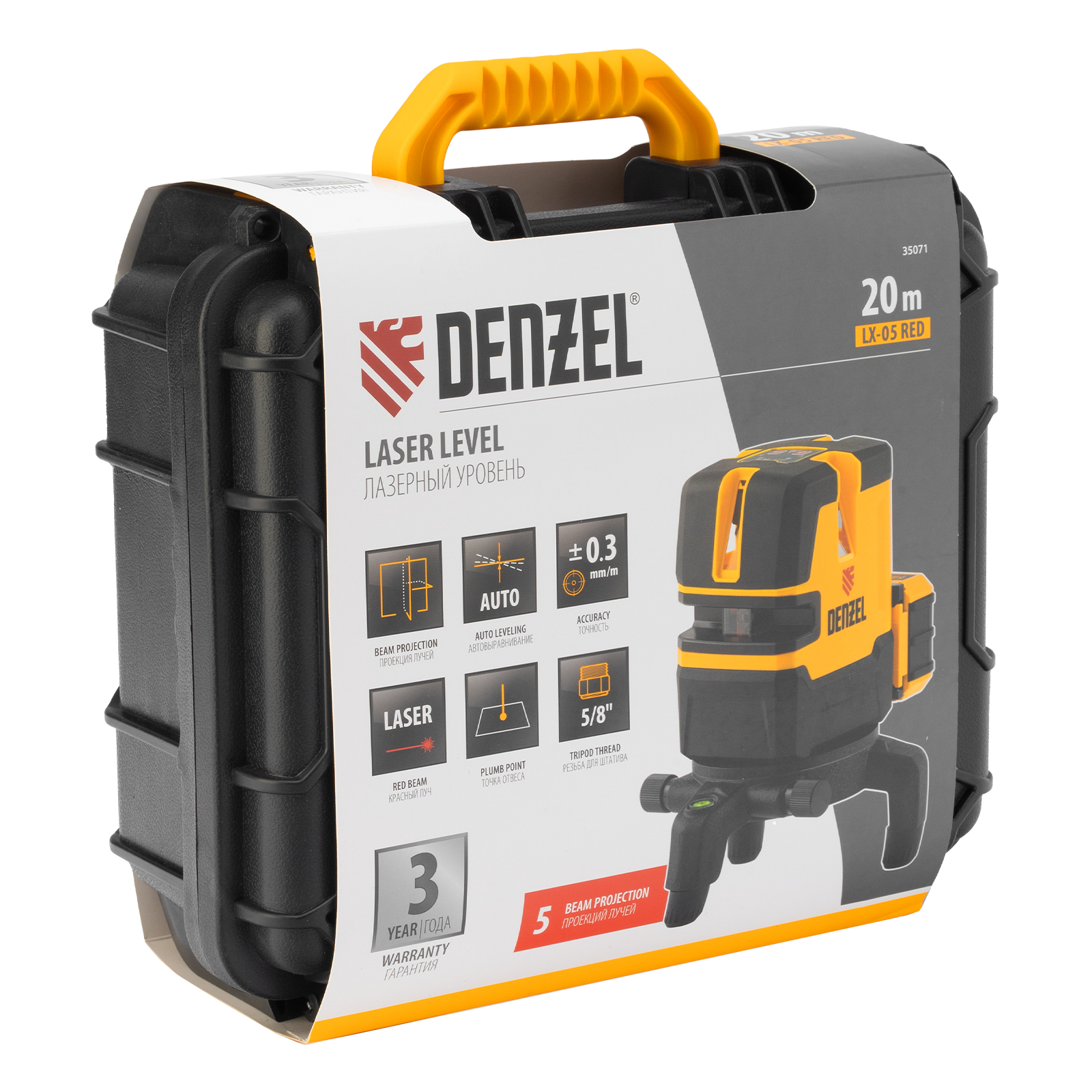 Лазерный уровень LX 05 Red, 20 м, 635 нм, аккумулятор Li 5200 mAh, резьба 5/8" Denzel в Москве