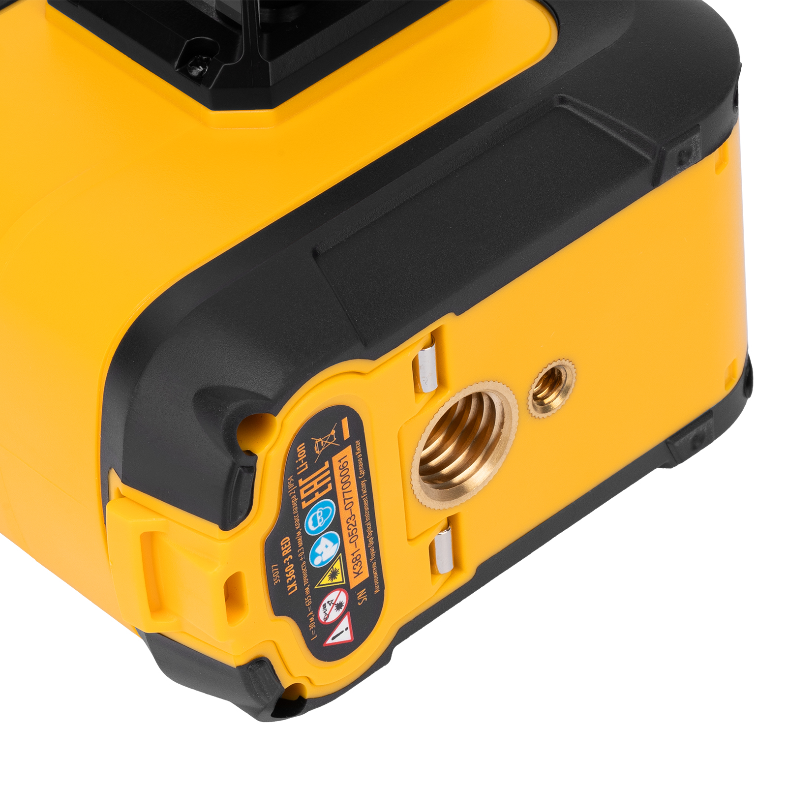 Мультипризменный лазерный уровень Denzel LX 360-3 Red 35077 с резьбой 5/8" под штатив работает от аккумулятора Li-Ion 2800 мАч и проецирует горизонтальные и вертикальные линии с охватом 360° на расстояние до 30 м при помощи лазерных лучей длиной 635 нм. Используется для разметки поверхностей в ходе строительных и отделочных работ.