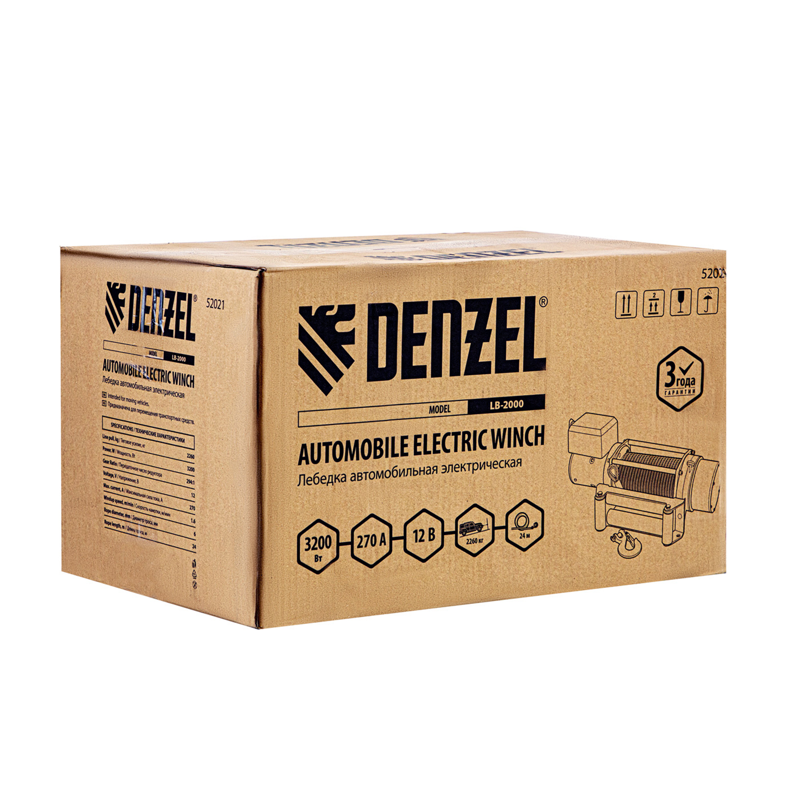 Лебедка автомобильная электрическая LB-2000, 2.2 т, 3.2 кВт, 12 В Denzel в Москве