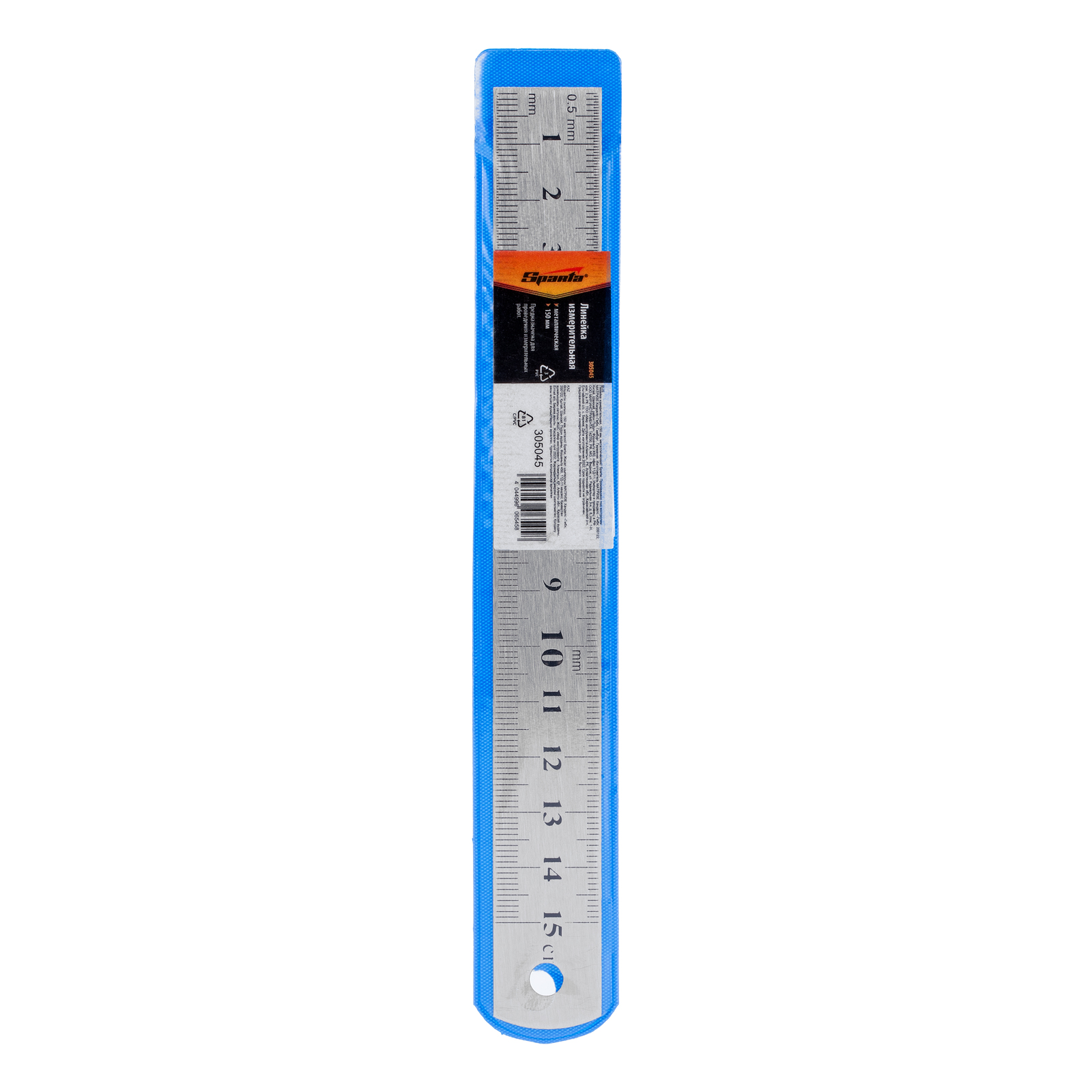 Металлическая измерительная линейка Sparta 305045 с пределом измерения 150 мм предназначена для определения размеров деталей, разметки поверхностей и начертания прямых линий. Используется преимущественно во время строительства и ремонта, проектирования, занятий творчеством, в металлообработке, будет полезна дома и в гараже.
