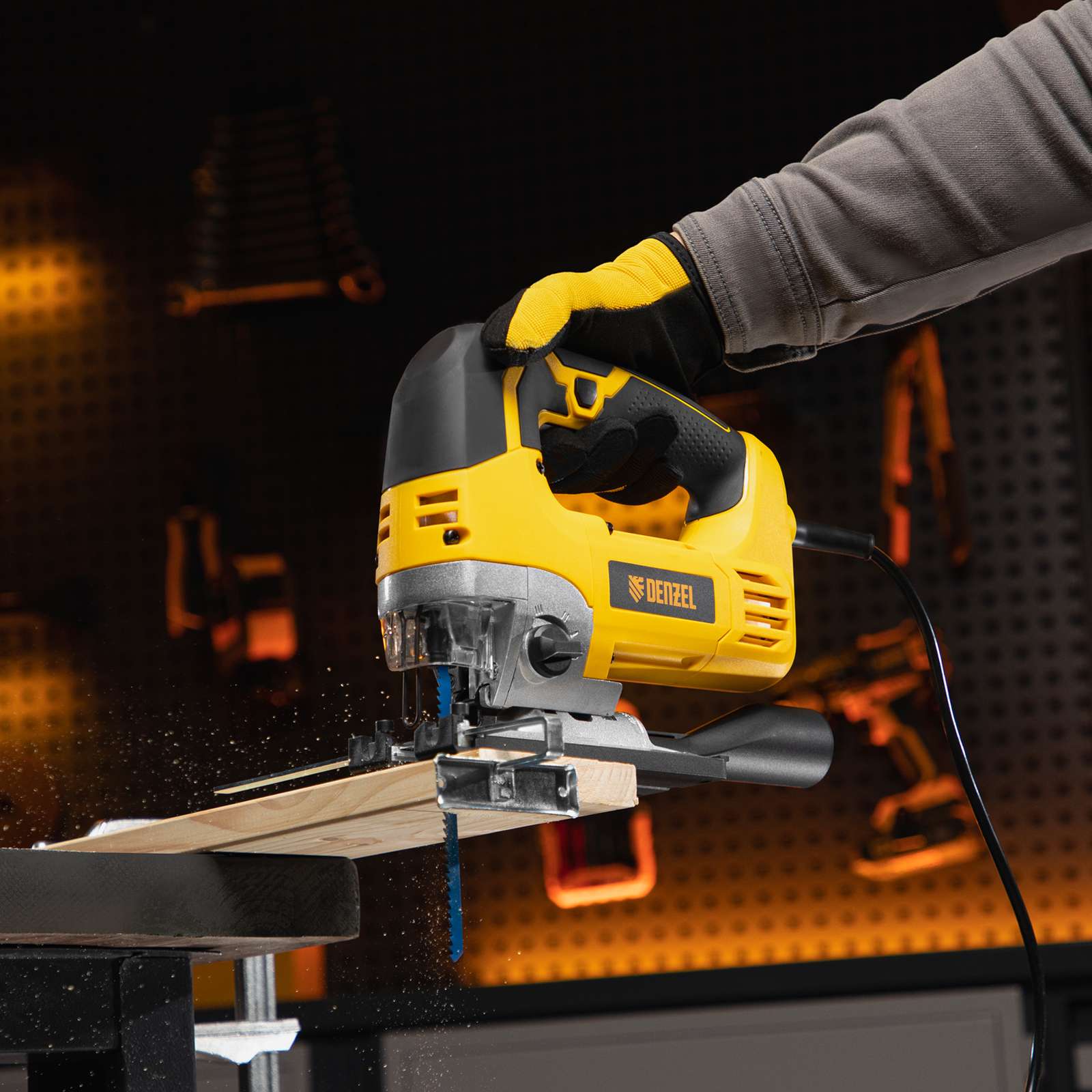 - Электронная регулировка частоты ходов — можно выбрать оптимальную скорость реза в зависимости от обрабатываемого материала.