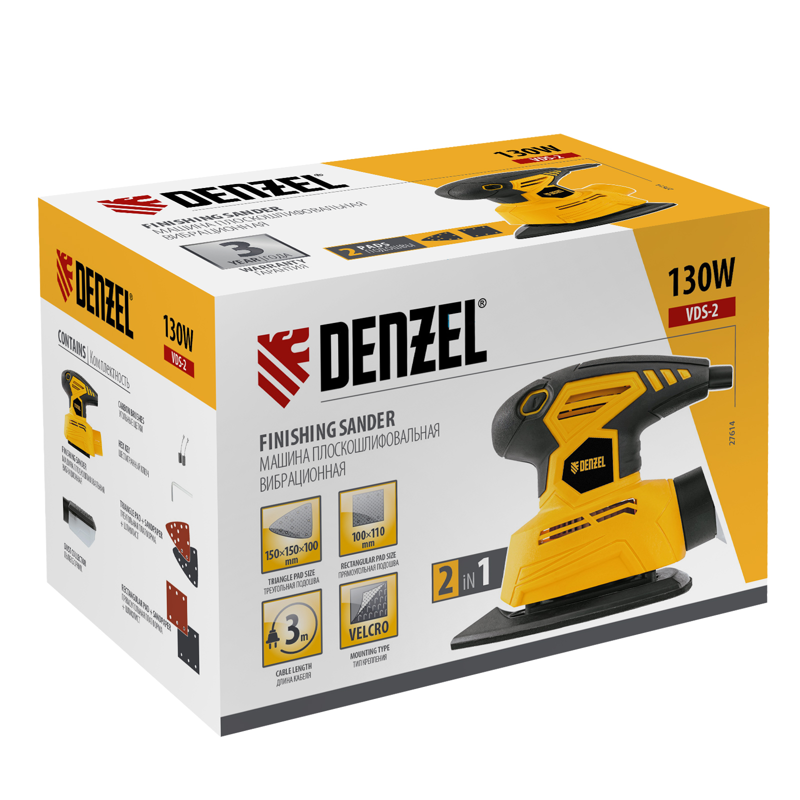 Машина плоскошлифовальная вибрационная 2 в 1 VDS-2, 130 Вт, 14000 об/мин Denzel в Москве