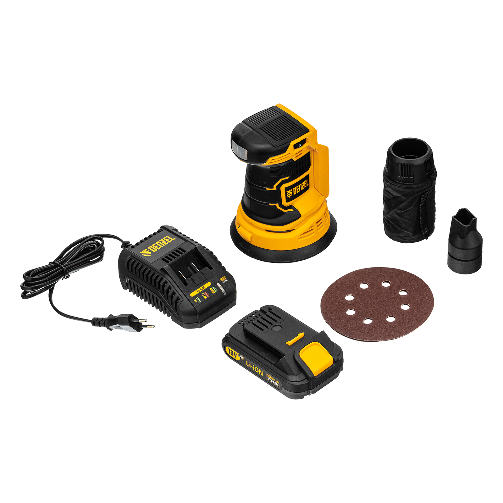 Машина шлифовальная эксцентриковая - 1 штАдаптер для пылесоса - 1 штМешок для сбора пыли - 1 штАдаптер пылесоса - 1 штШлифовальный лист - 2 штБатарея аккумуляторная - 1 штЗарядное устройство - 1 штРуководство по эксплуатации с гарантийным талоном - 1 шт |